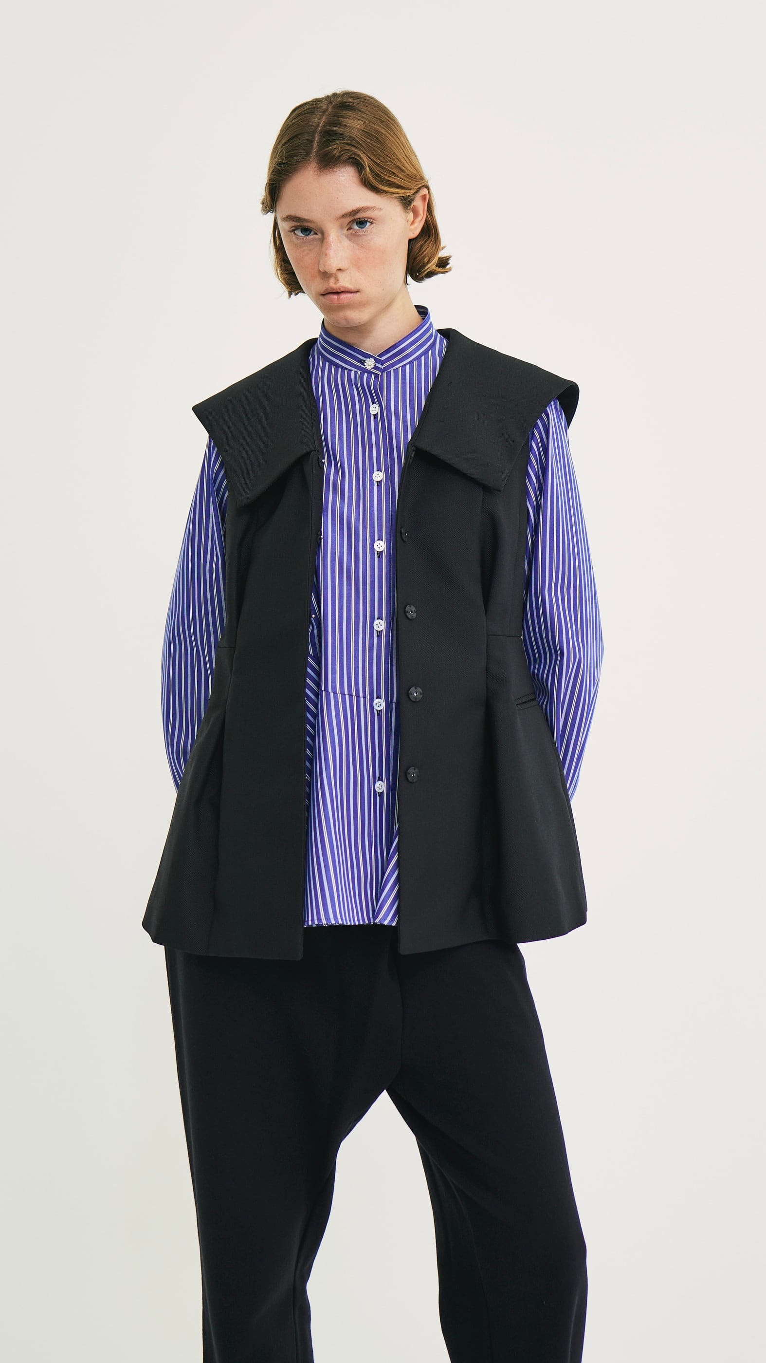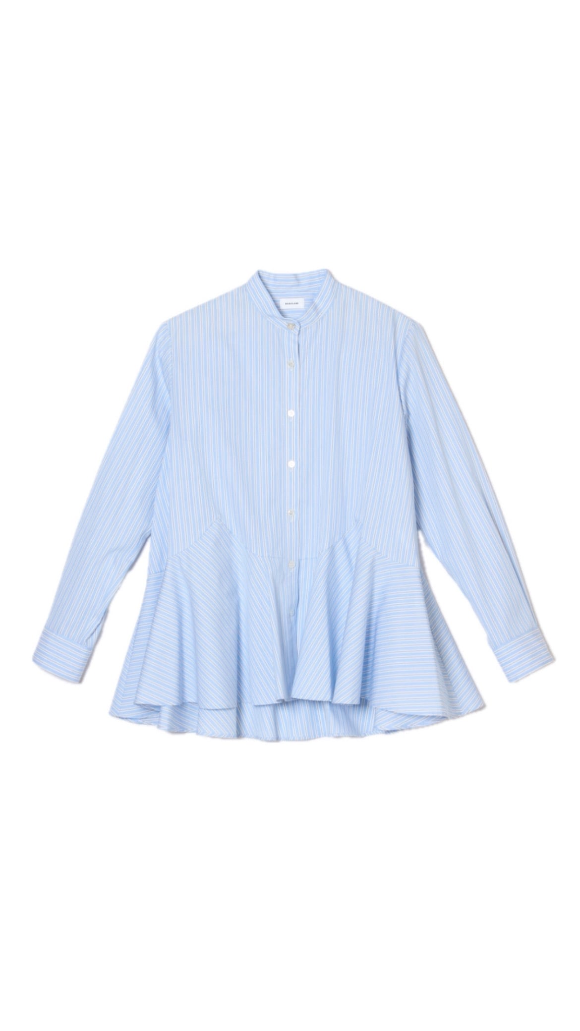 REKISAMI -No Collar Stripe Shirt- :BLUE, :NAVY,