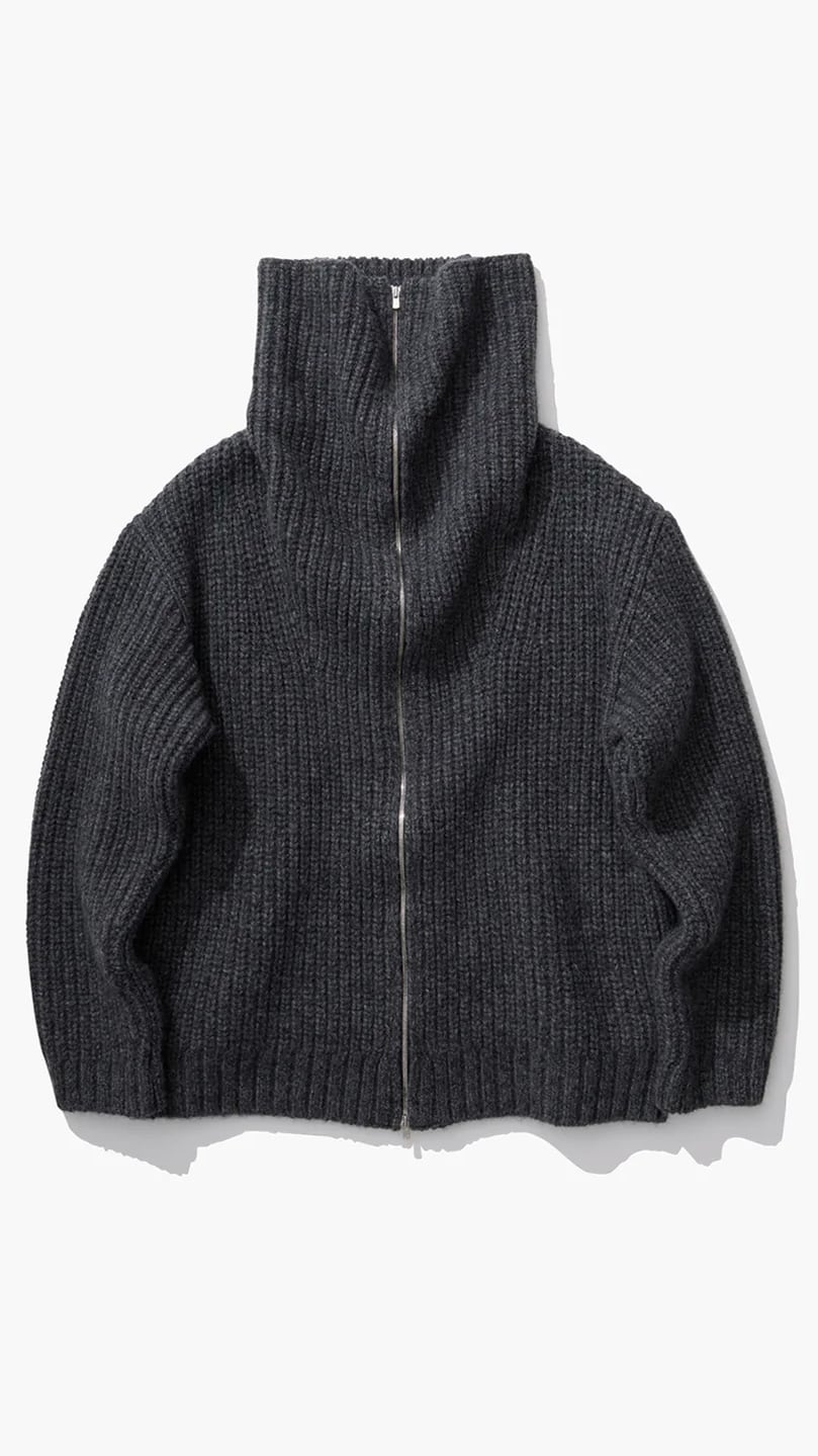 -WOOL CASHMERE ALPACA | ZIPPER CARDIGAN- :CHARCOAL-