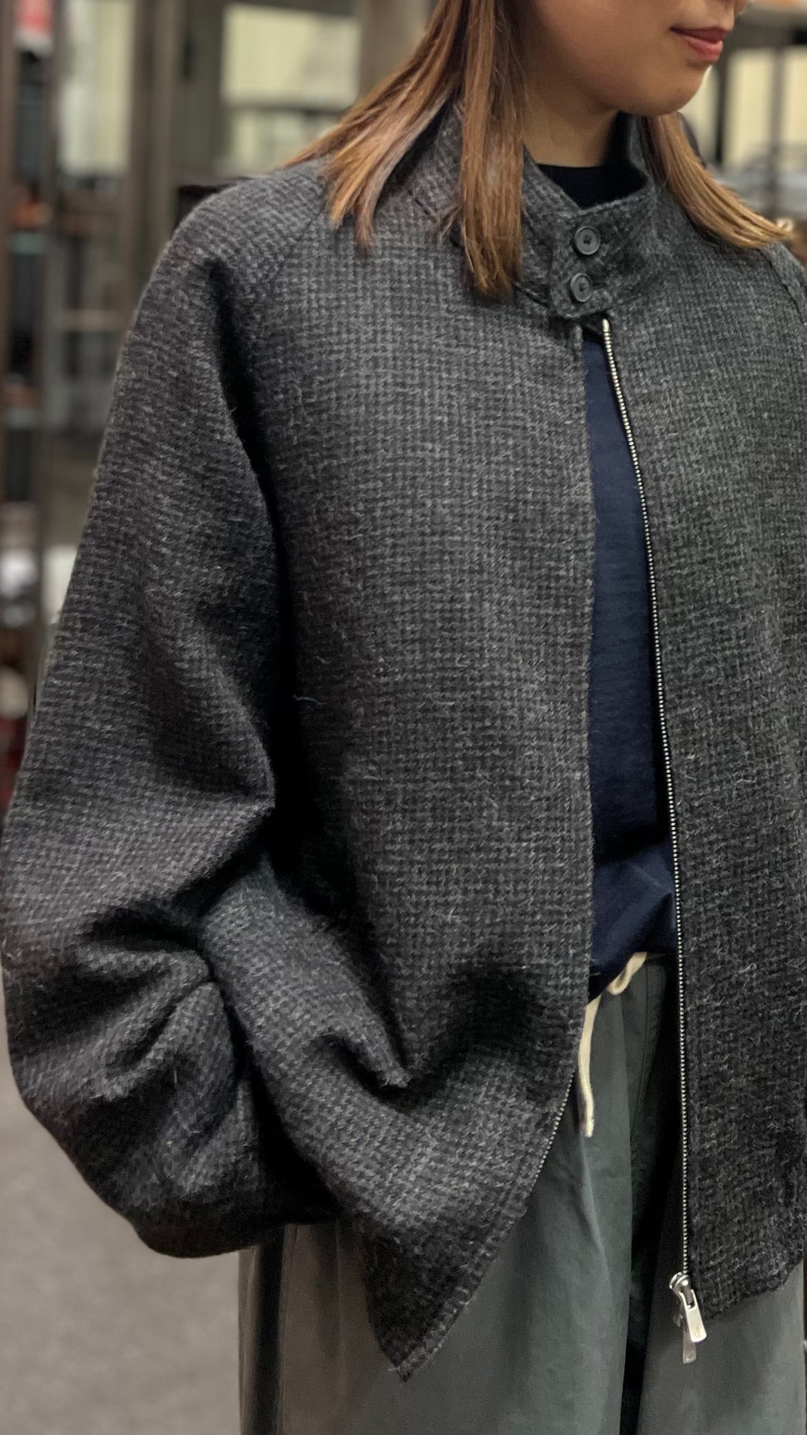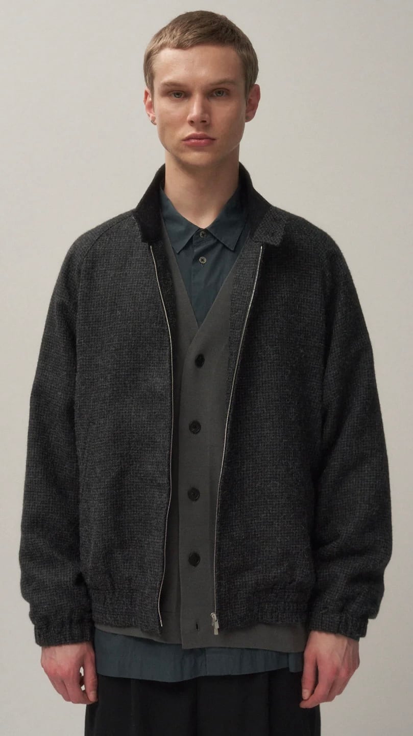 ATON -ALPACA HOUND TOOTH | HARRINGTON JACKET- :BROWN, :CHARCOAL GRAY,