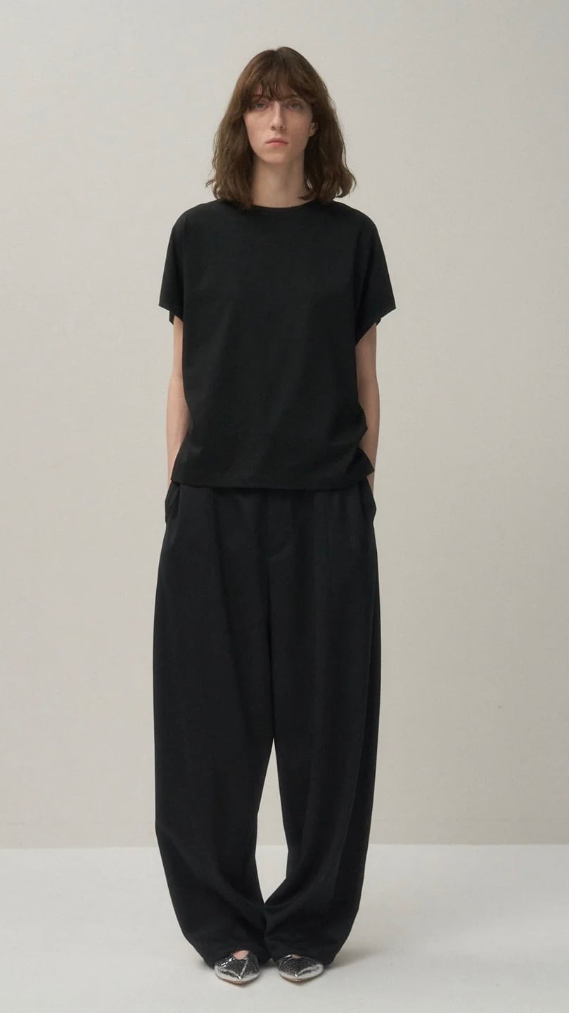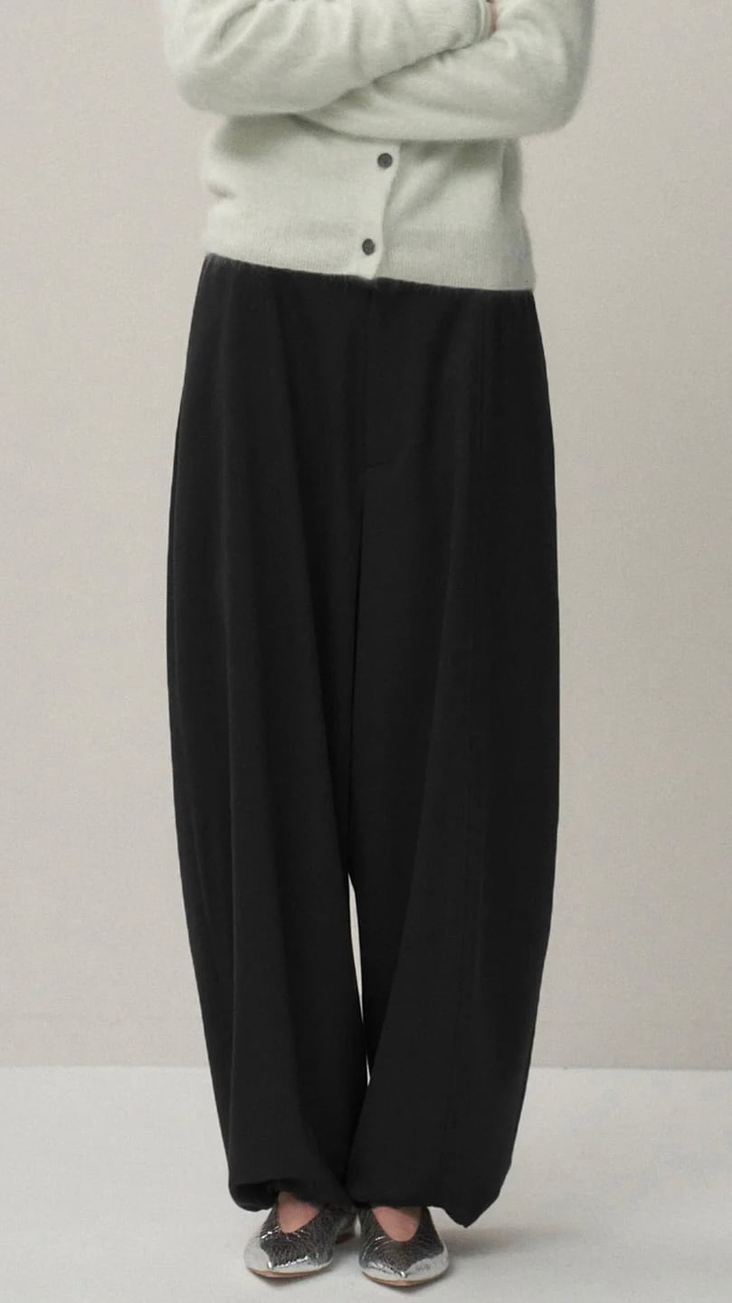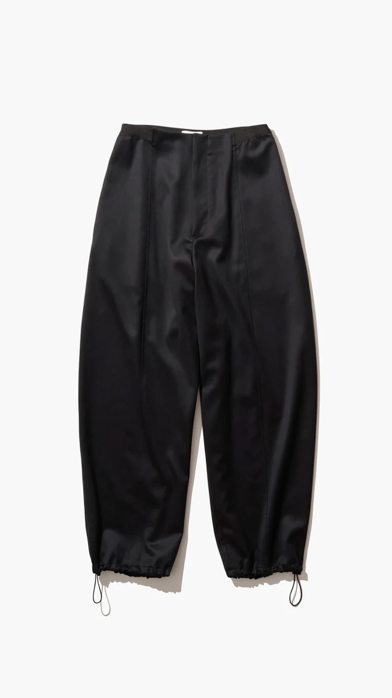 ATON -WOOL SATIN STRETCH | EASY PANTS- :BLACK,