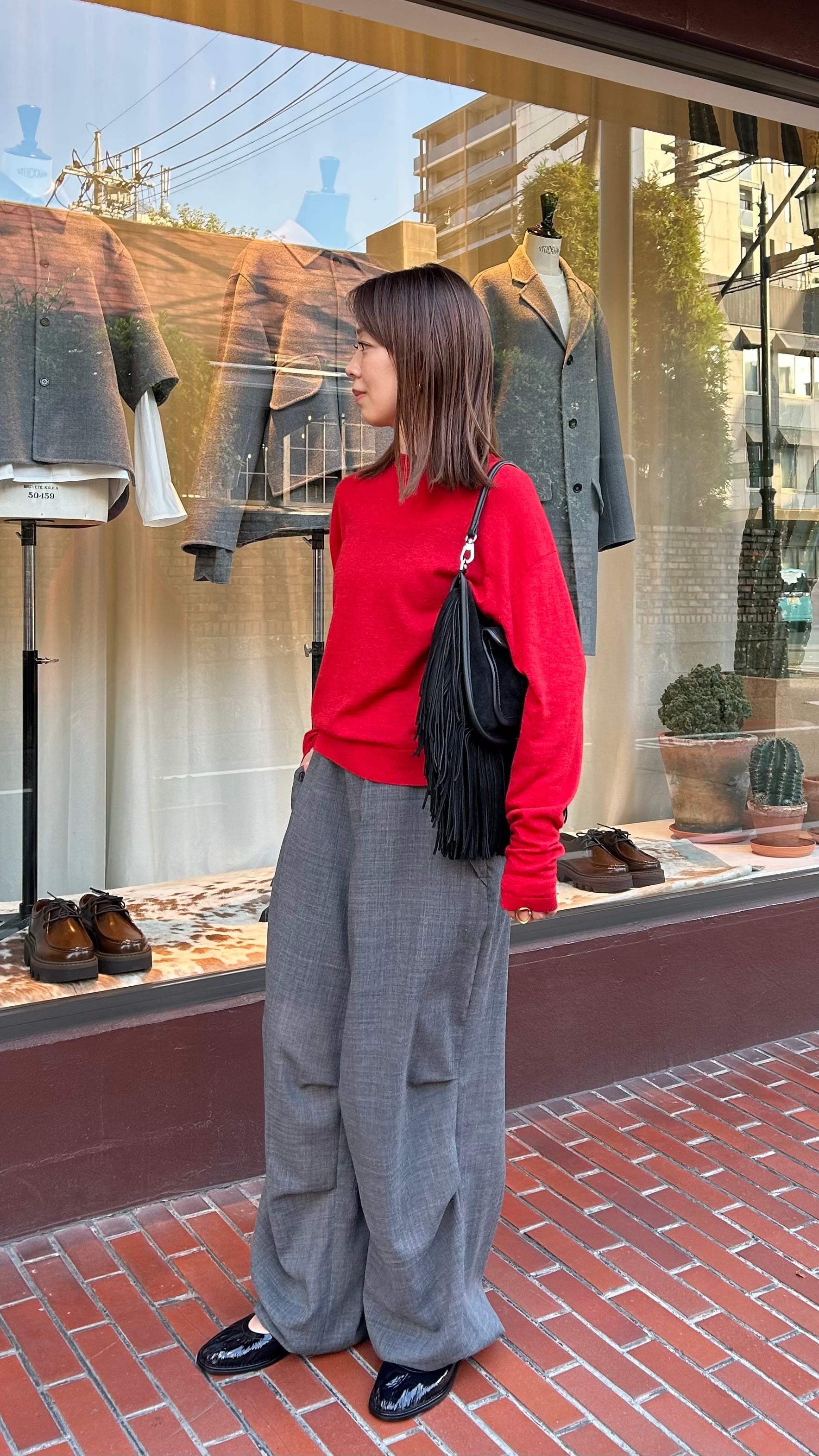 ミリタリーのスノーパンツをベースにした、メンズサイズを着ているようなオーバーサイズシルエットが特徴的なパンツです。古着だと気になりがちな腰回りの余計なダブつきや、ヒップが下がって見えるシルエットを着用時美しく見えるようアップデートしています。お尻周り下くらいまでキュプラの裏地がついています。素材の落ち感もあり、上品さのあるミリタリーパンツです。