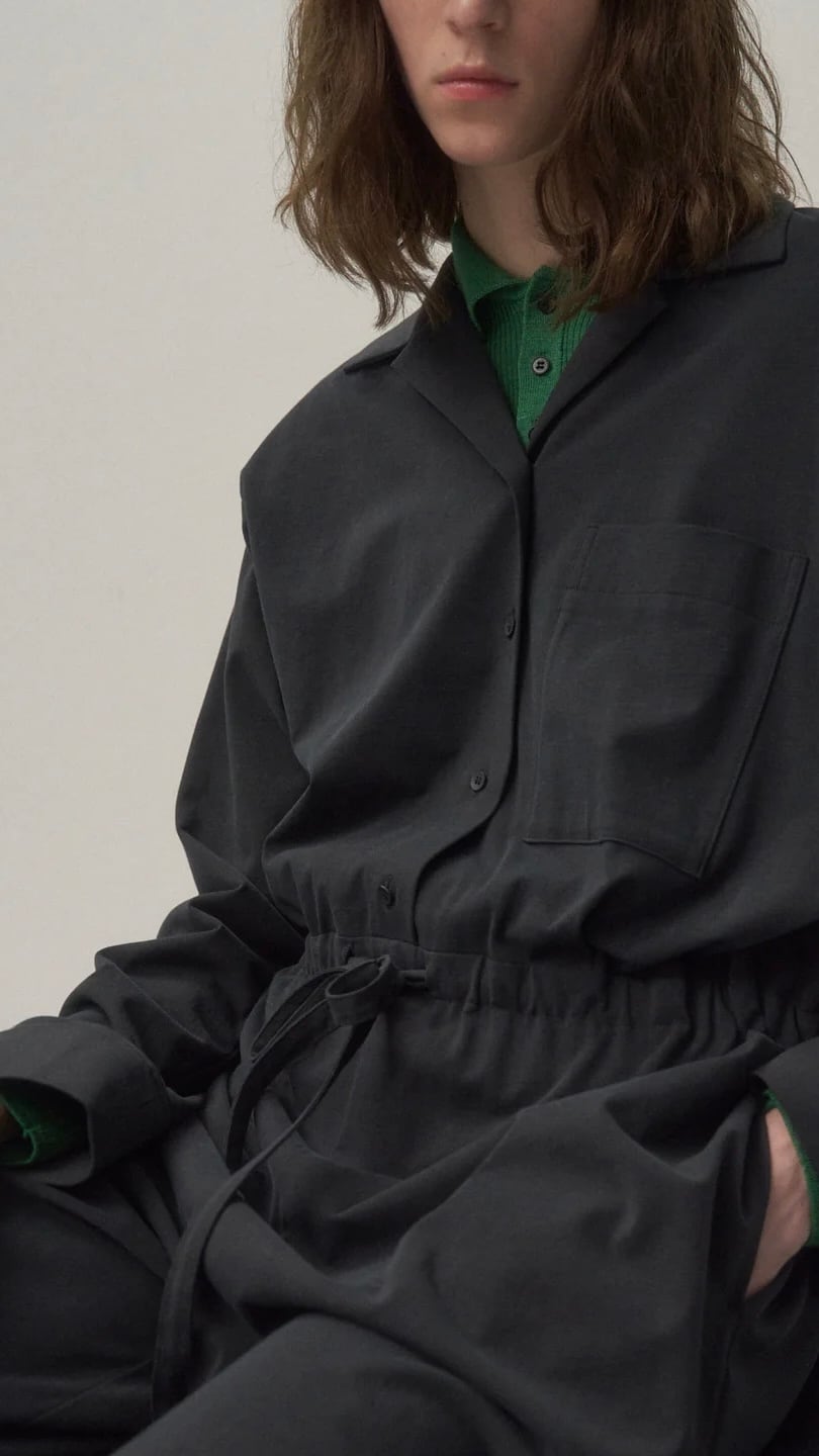 ATON -FRESCA PLATE NUBUCK | OVERSIZED JUMPSUIT- :CHARCOAL GRAY,