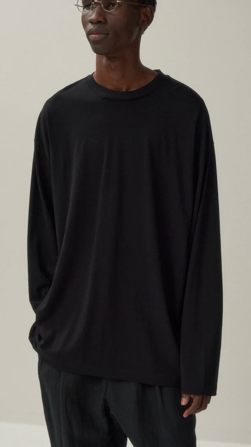 ATON -ROYAL WOOL JERSEY | LONG SLEEVE T-SHIRT-:BLACK,