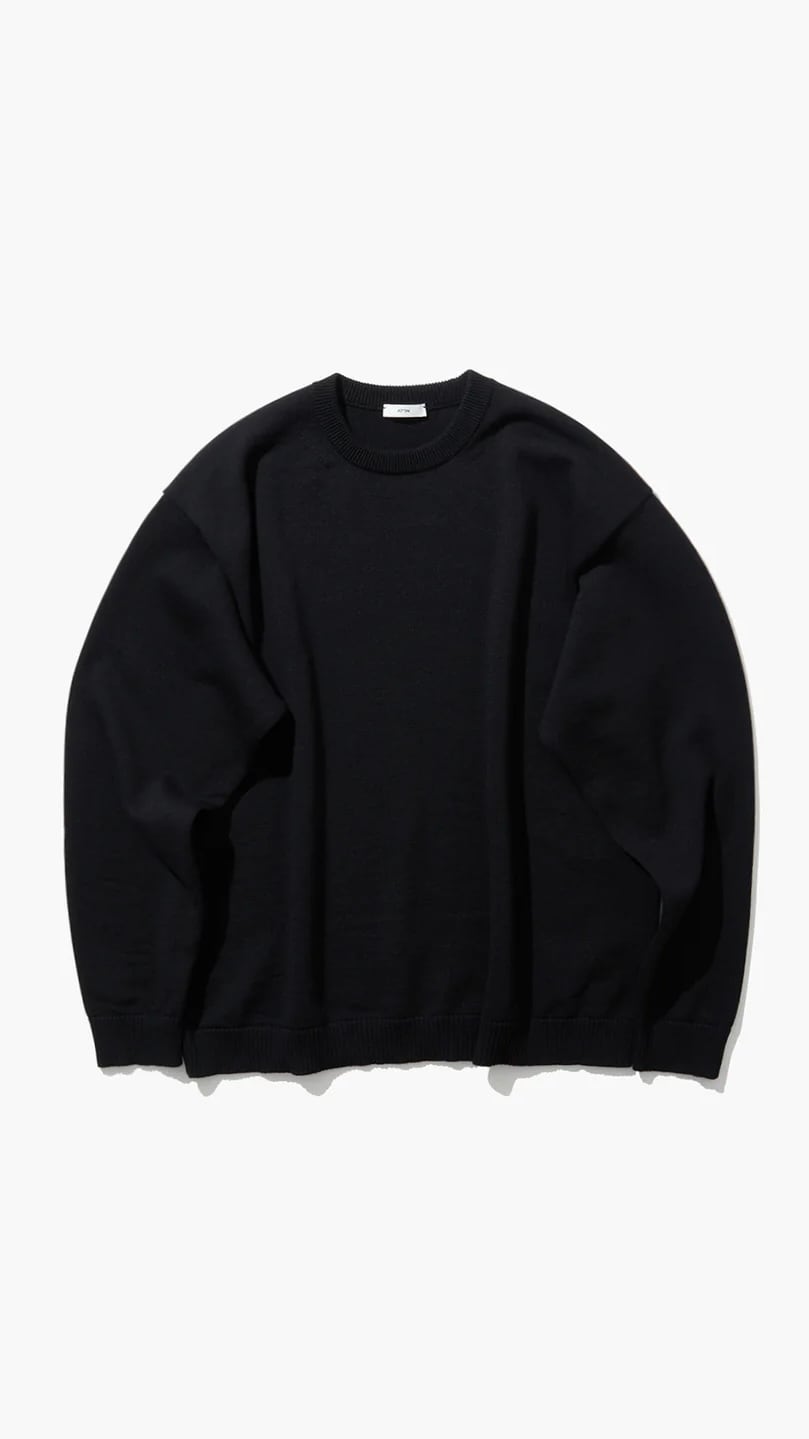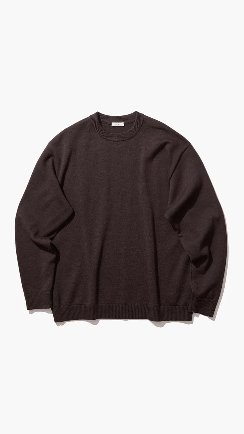 ATON -WOOL WASHI | CREWNECK SWEATER-:BROWN TOP,:BLACK,