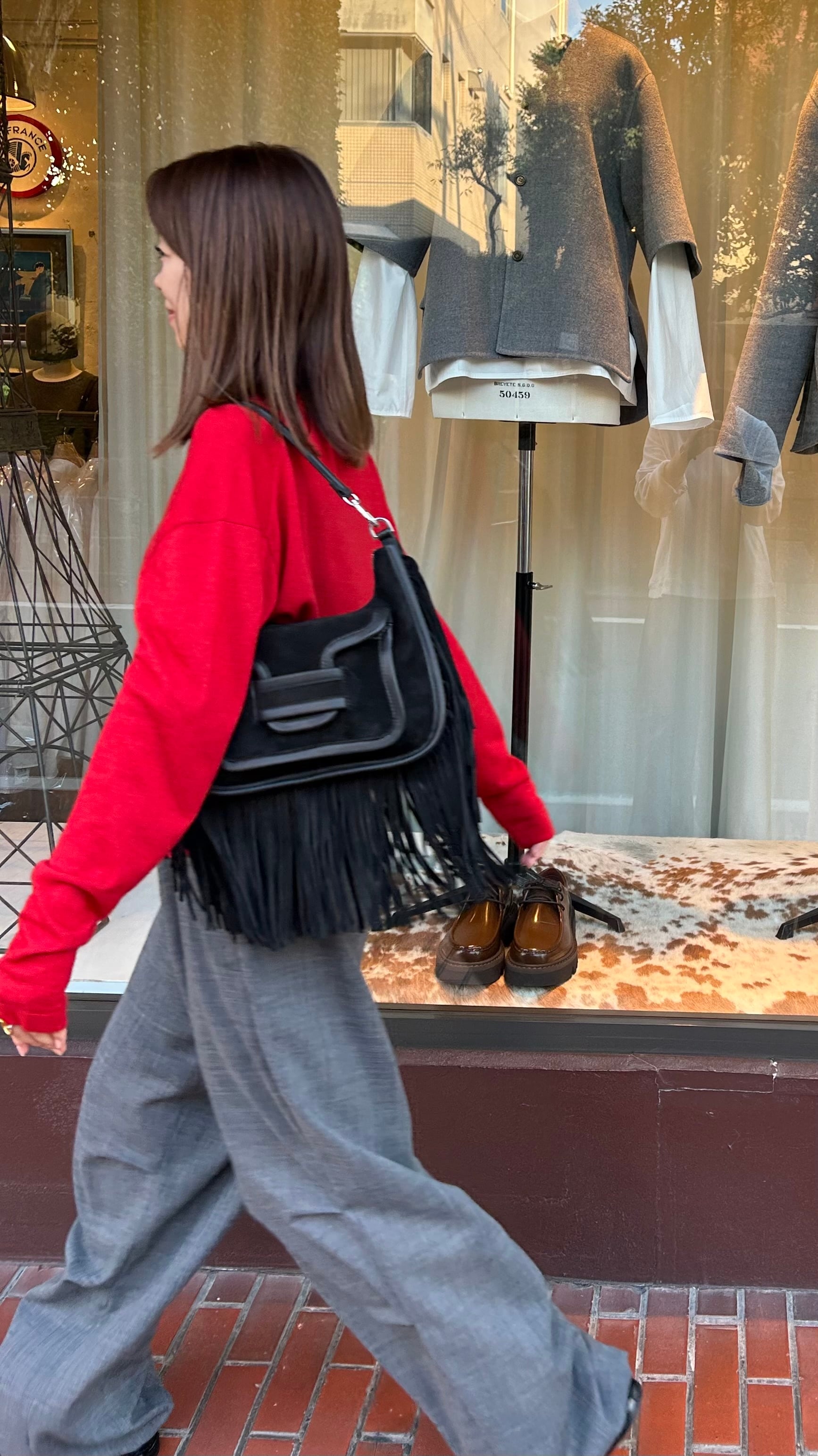 ショルダースタイルの際には身体にフィットする薄いボディです。クロスボディにもなるロングストラップが付属しています。