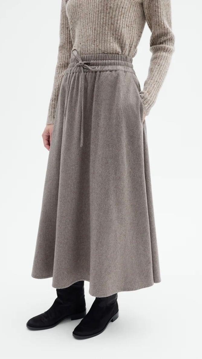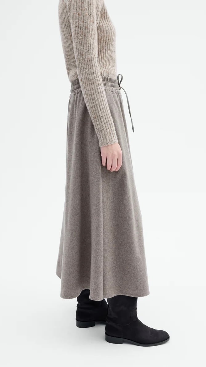 バージンウールとカシミヤを贅沢にブレンドしたこの ミディスカートは、抜群の暖かさと柔らかさを提供します。
