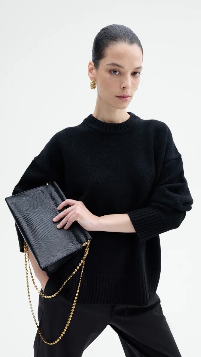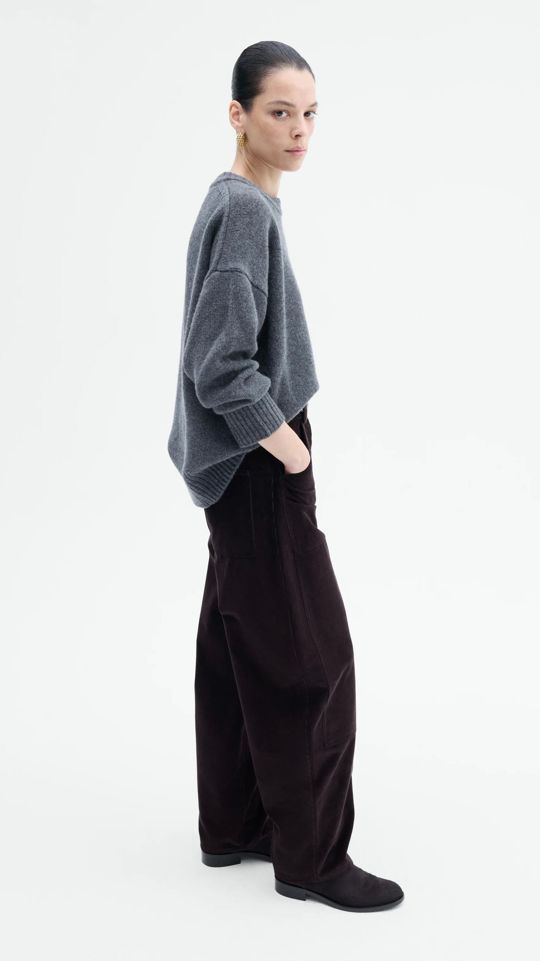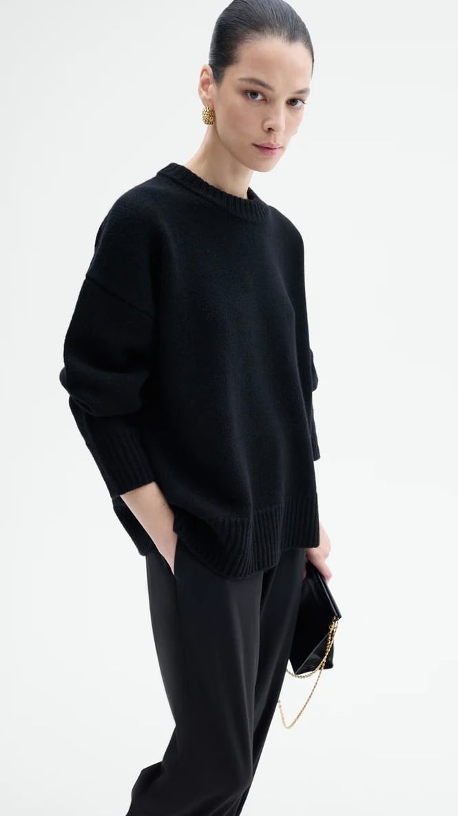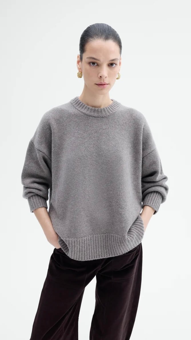 ウールとカシミアの混紡糸を使用した、オーバーサイズで快適なクルーネックセーターです。ネックライン、カフス、裾に時代を超越したリブのディテールが施された、拡張されたシルエットです。