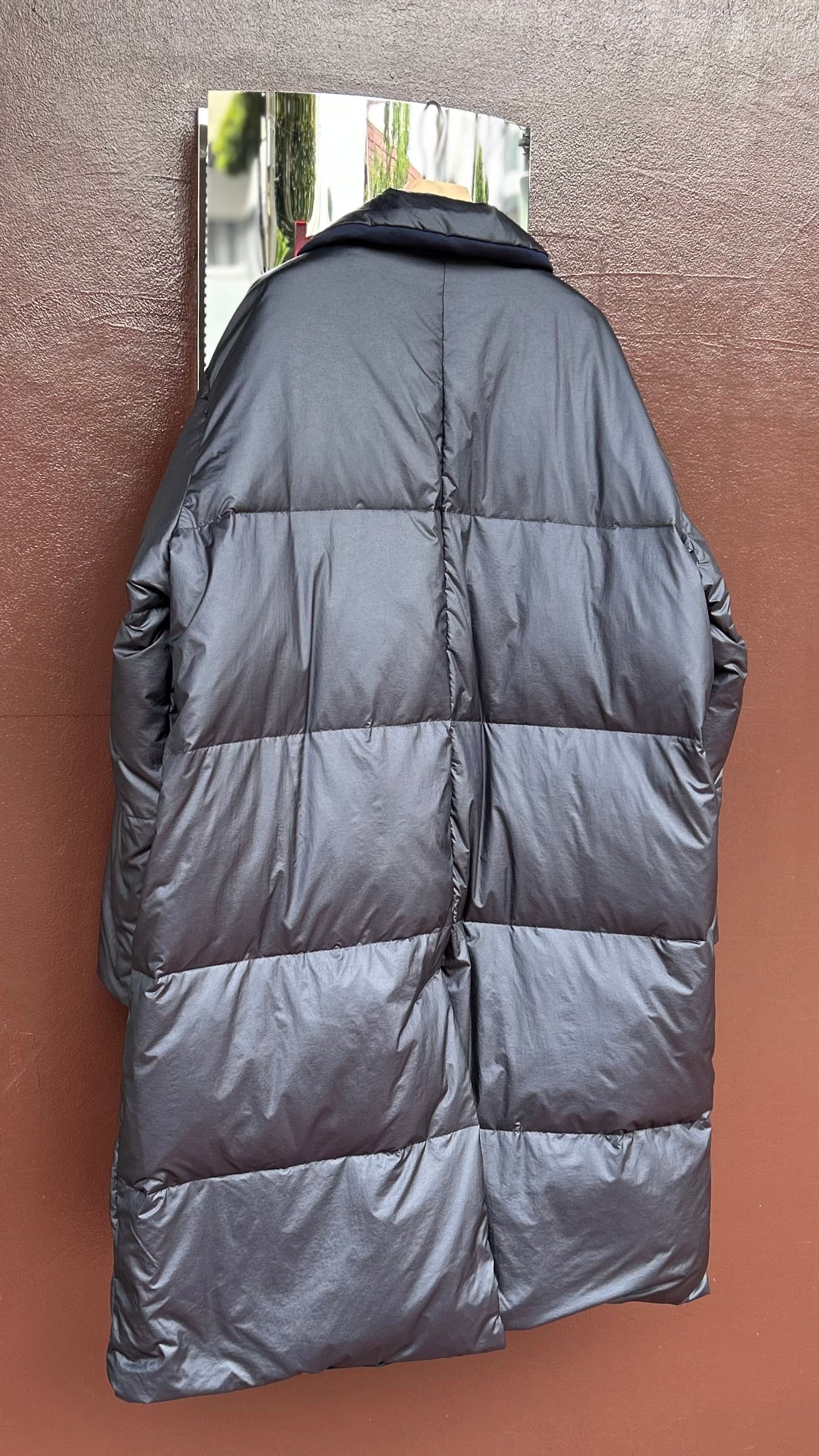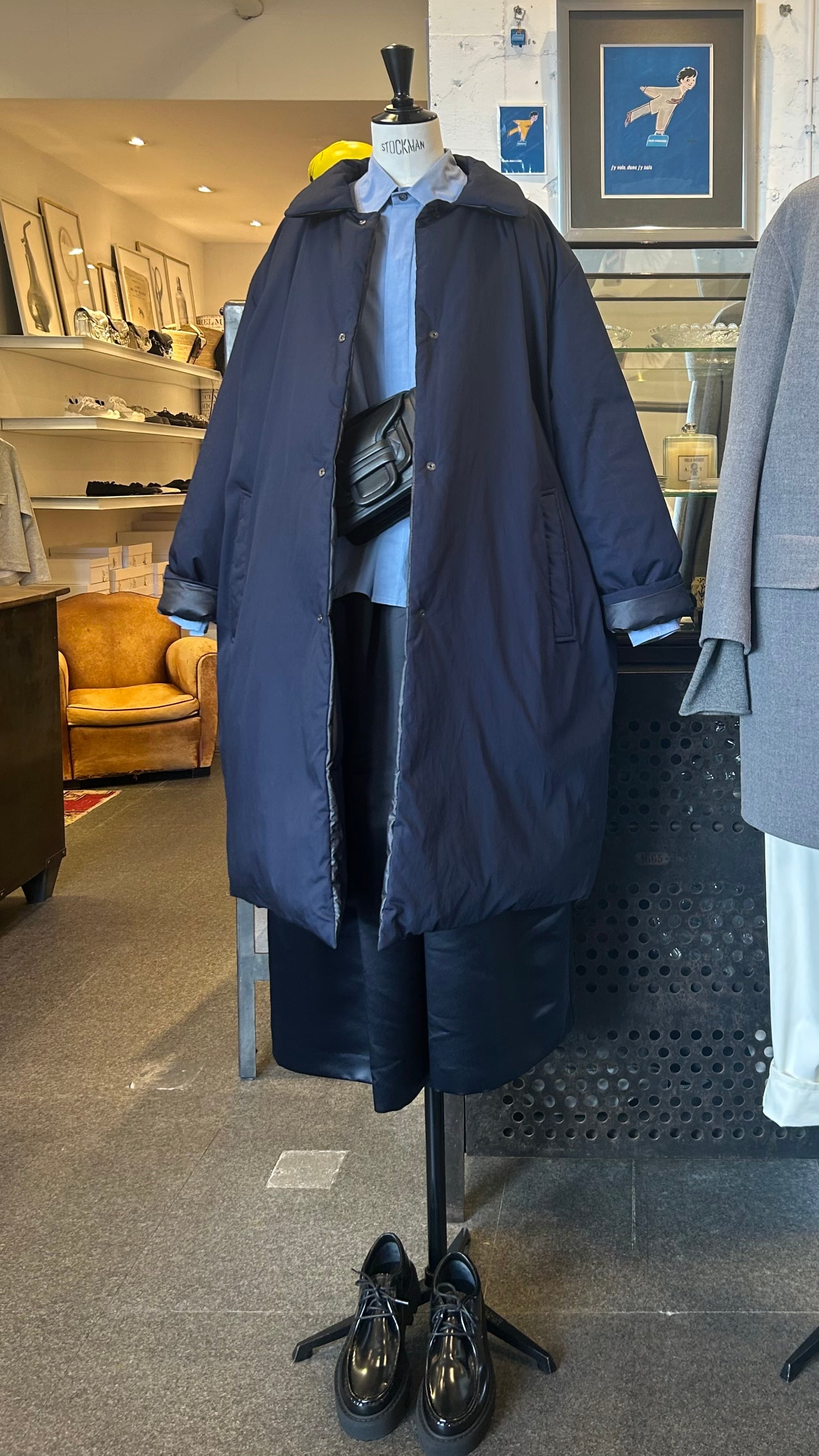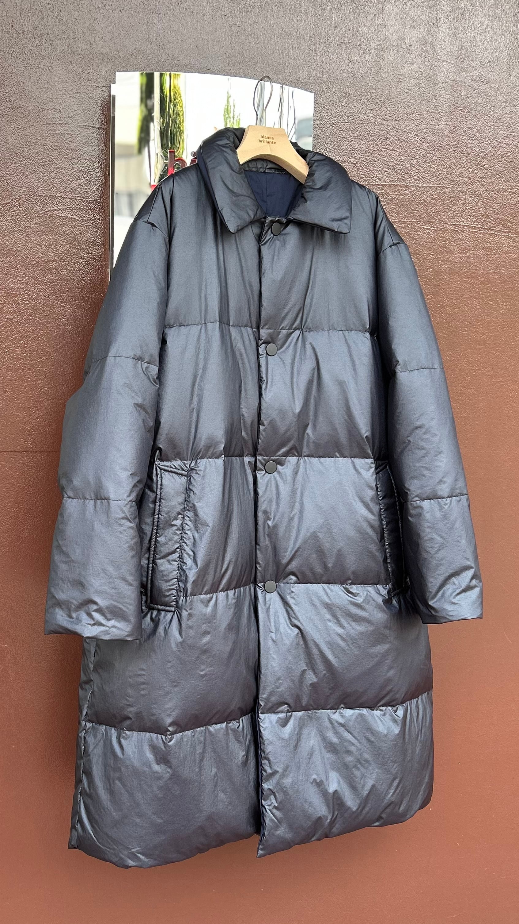 SOFIE D'HOORE -OTIS- reversible long down coat press btns- : NIGHT BLUE/OFF,