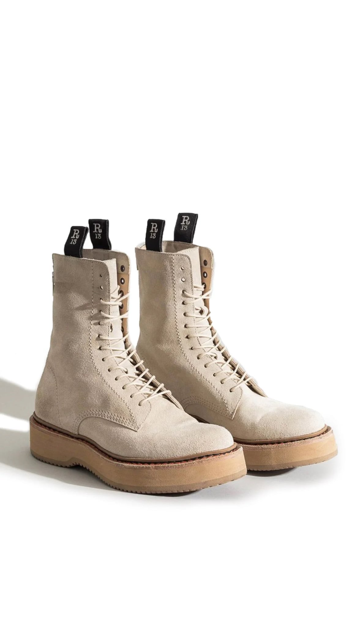 R13 -SUEDE SINGLE STACK LACE U- :Handmade Leather Combat Boot :KHAKI