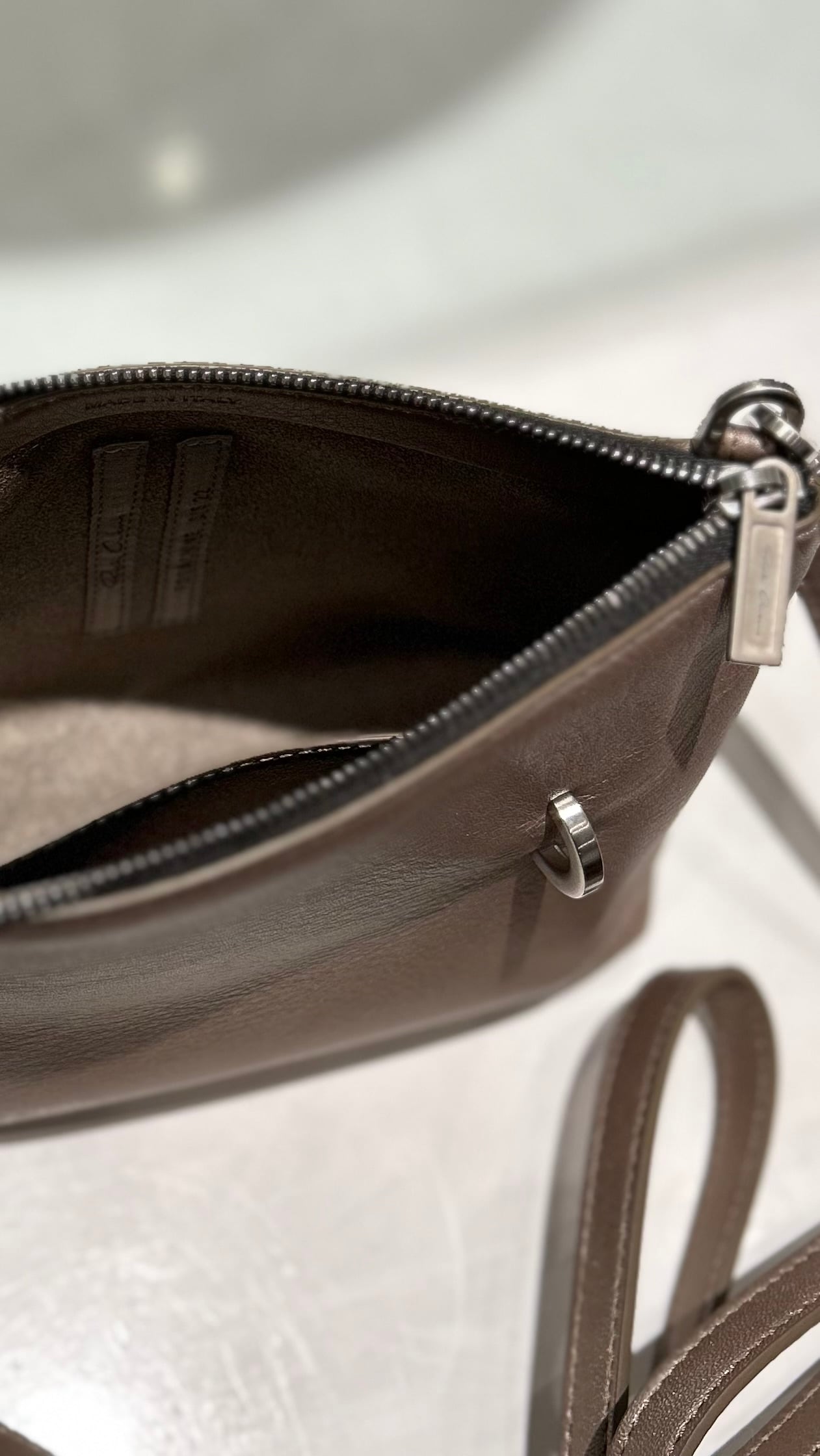 RICK OWENSのカウレザーを使用したショルダーバッグは、洗練されたデザインでシンプルながらも存在感を放つアイテムとして、日常使いにぴったりです。