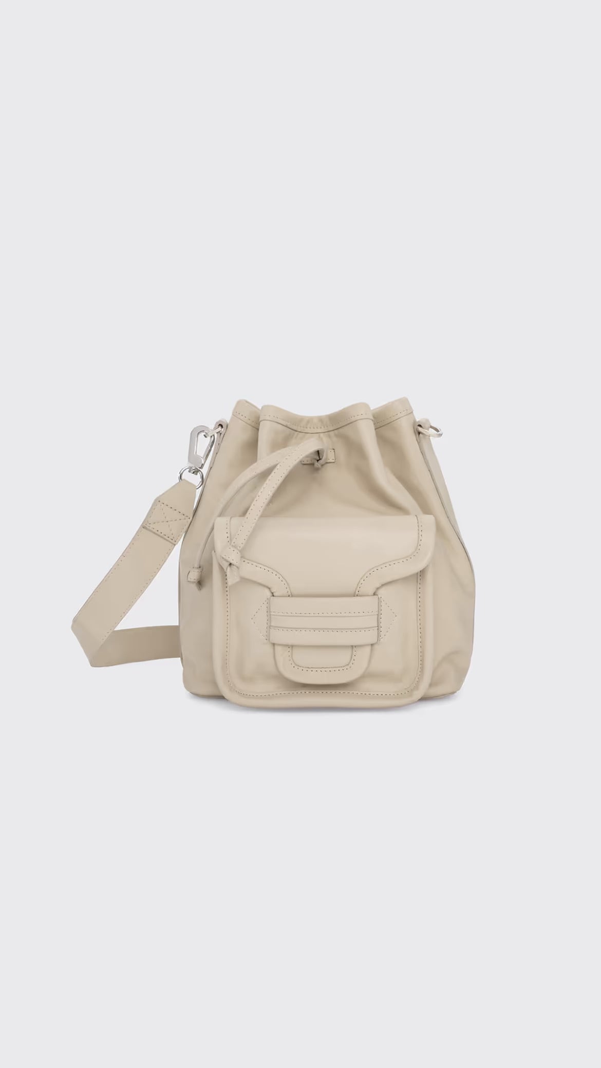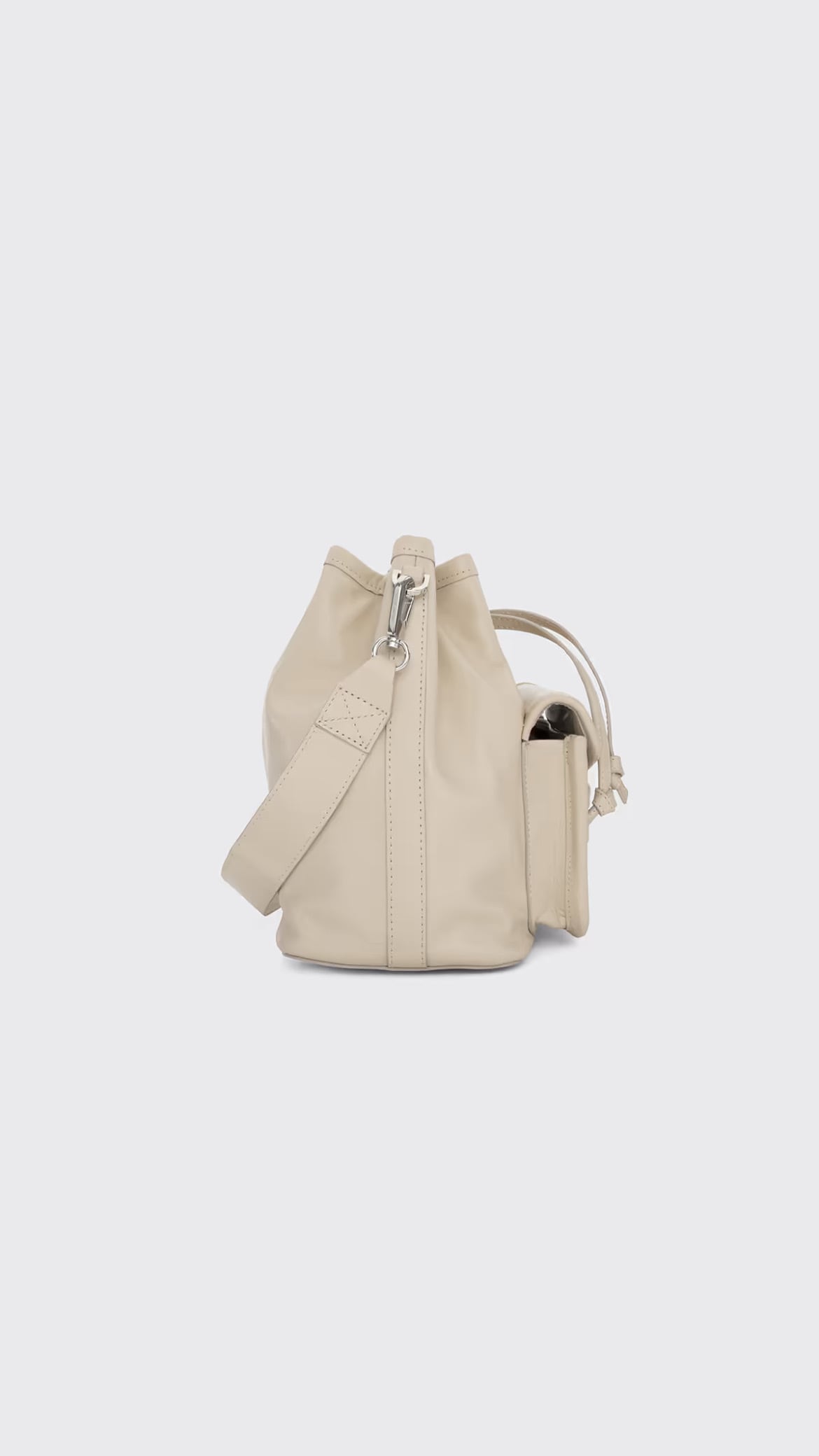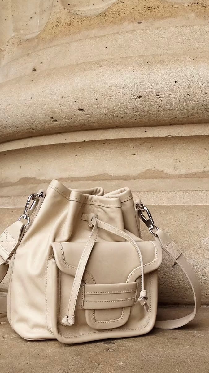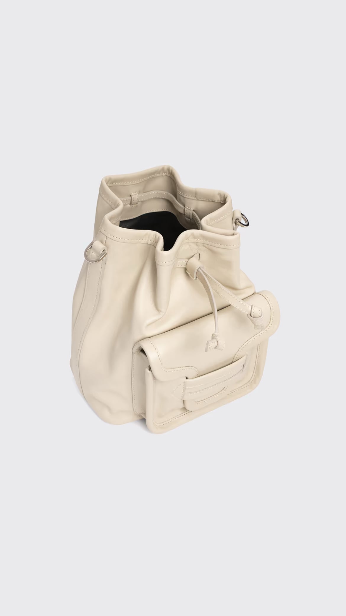 収納力がアップしてさらに使いやすく、ドローストリング開閉式でショルダーバッグとしてもクロスボディバッグとしてもスタイリングできます。