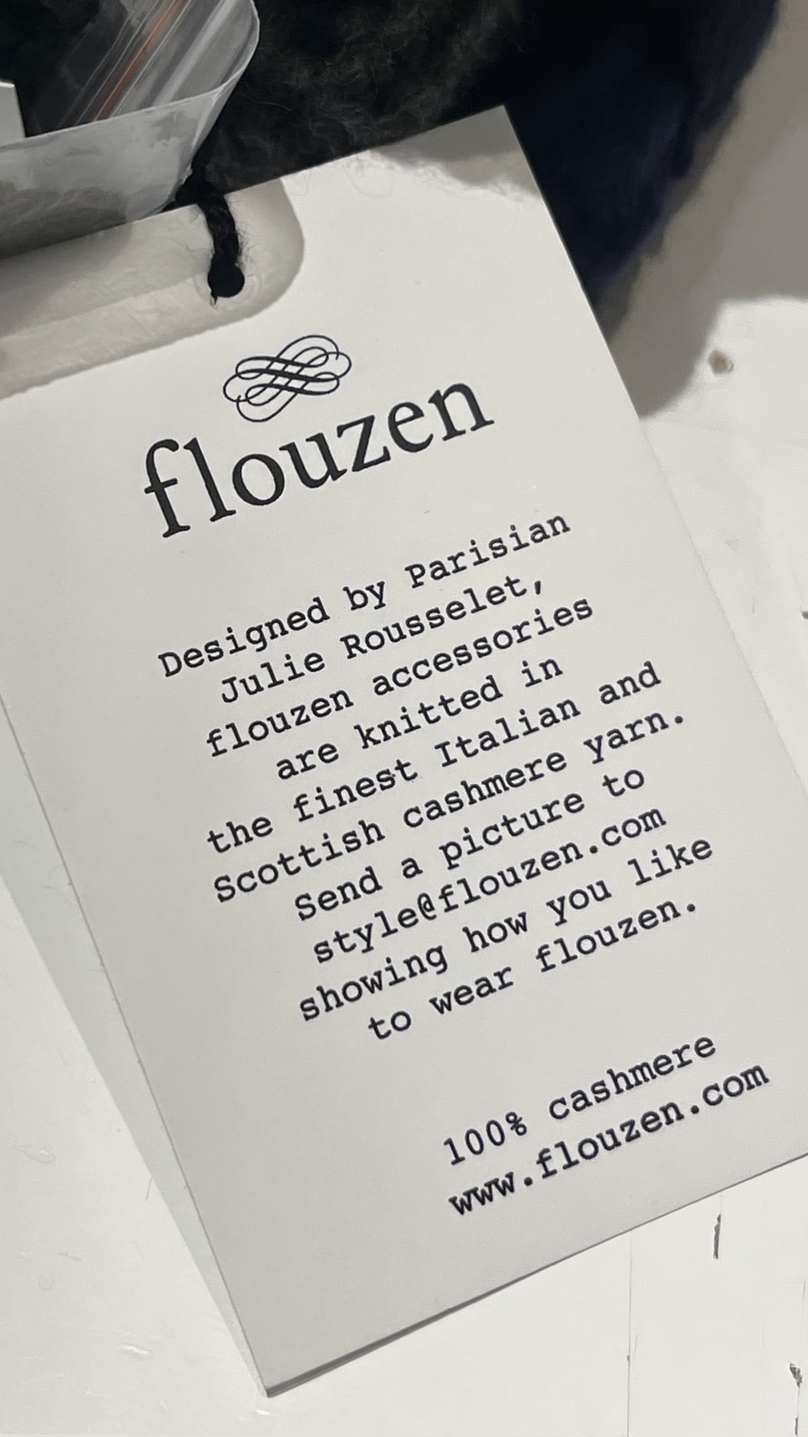 パリのジュリー・ルースレが デザインしたフルーゼンの アクセサリーは、最高級の イタリアとスコットランド産 のカシミヤ糸で編まれています。