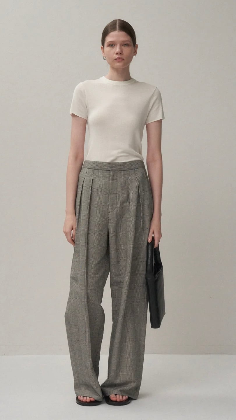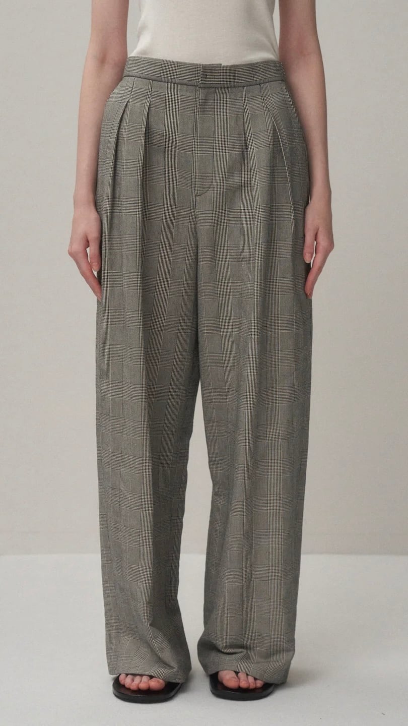 ATON -ROUND COTTON LINEN | WIDE EASY PANTS- :CHECK,