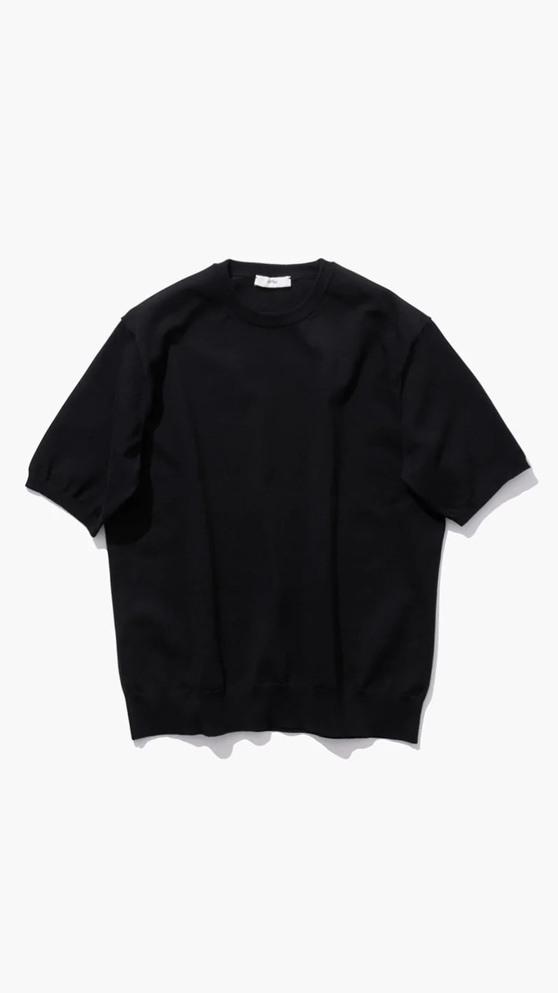 原料にアメリカのアルティメイトピマコットンを使用したニット素材です。旧式の紡機を使ってゆっくりと紡績することで、通常の紡績工程では決して表現できない、自然なムラ感と肌馴染みの良い風合いが特徴のオリジナル素材です。