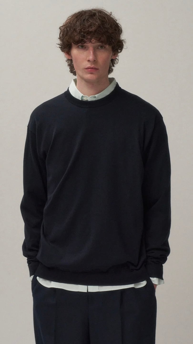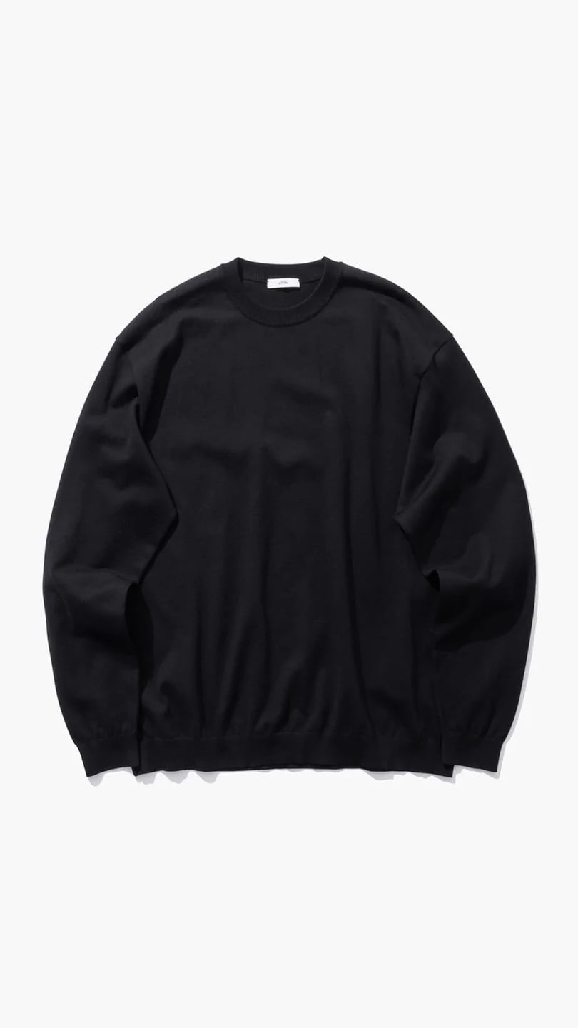 ATON -FINE COMPACT COTTON | CREWNECK SWEATER- :BLACK,