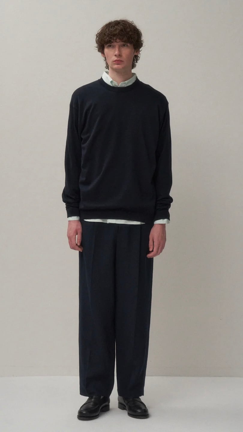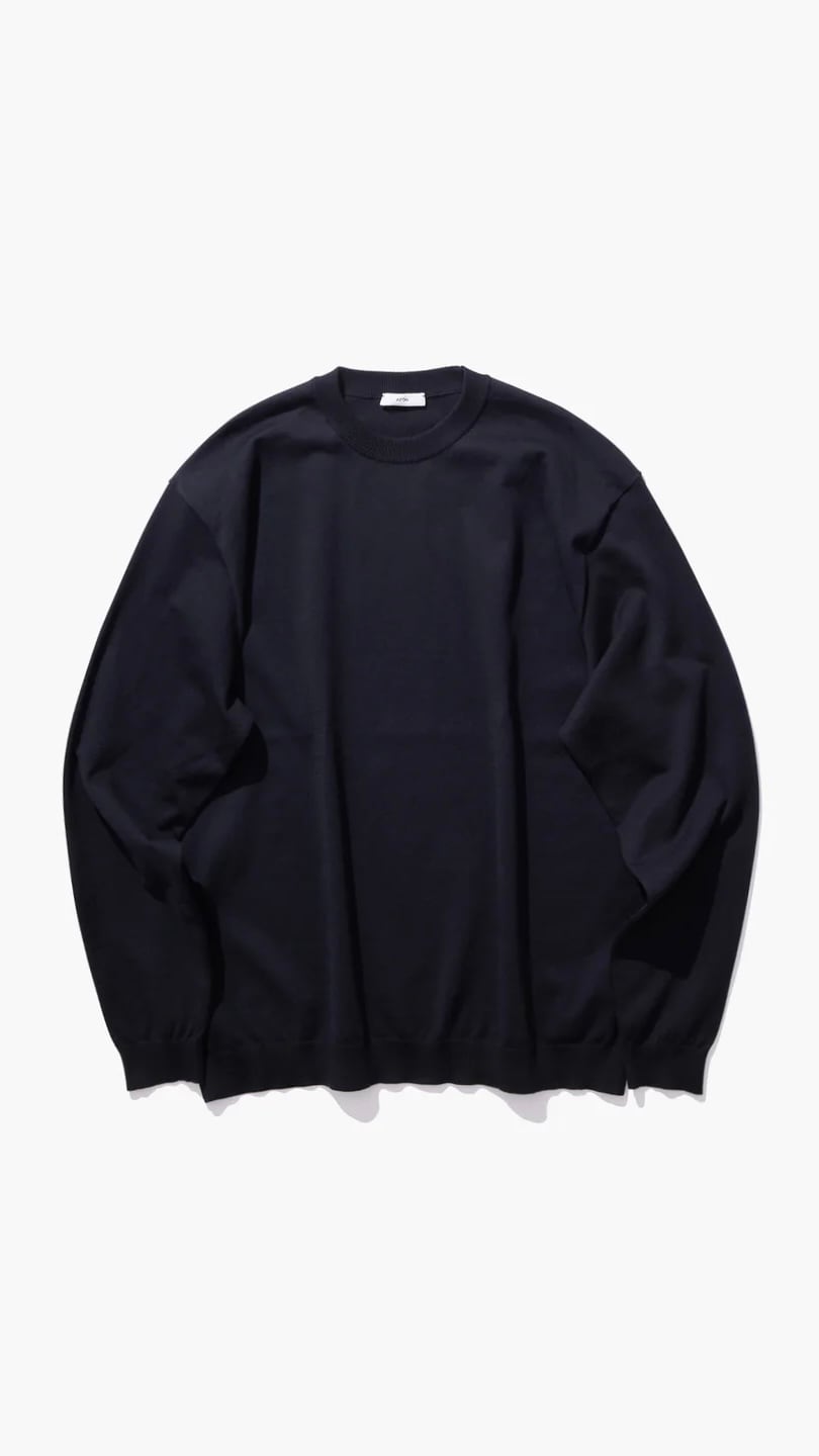 程よいリラックス感が特徴のクルーネックセーター。天竺16ゲージを採用し、度詰めでしっかりとした着心地に仕上げました。裾リブが適度に締まった、ニットらしいシルエットを採用しています。
