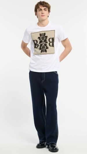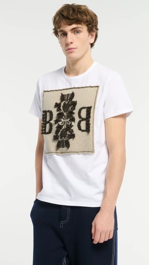 -Cotton t-shirt with Barrie logo cashmere patch-