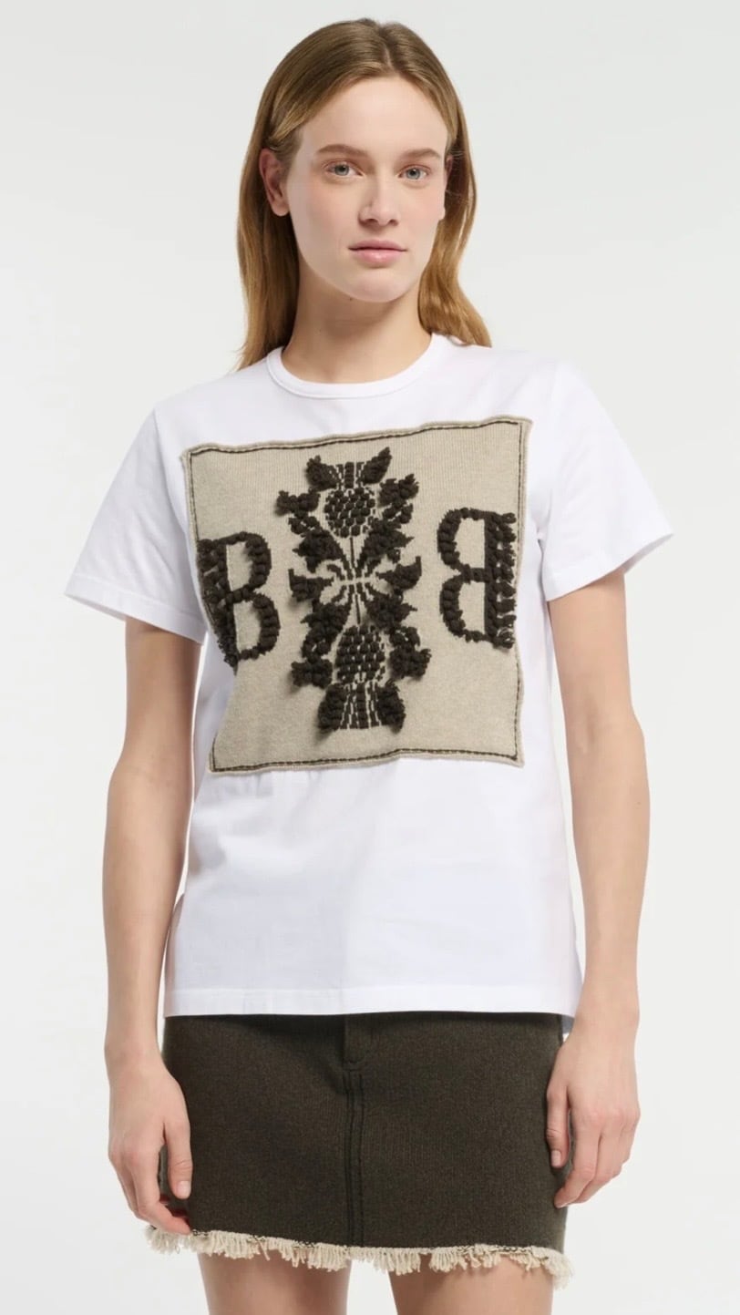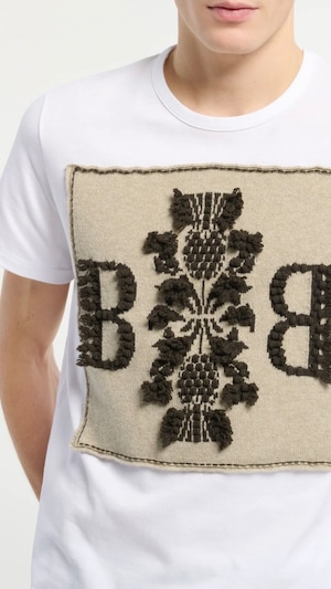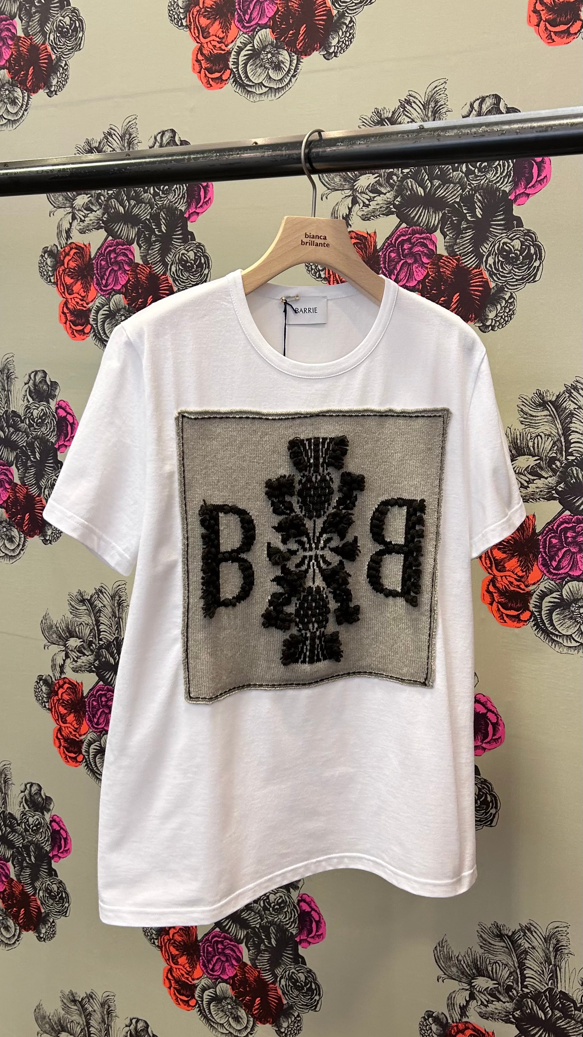 BARRIE -Cotton t-shirt with Barrie logo cashmere patch- :827(GYPSUM/DARK MALT)