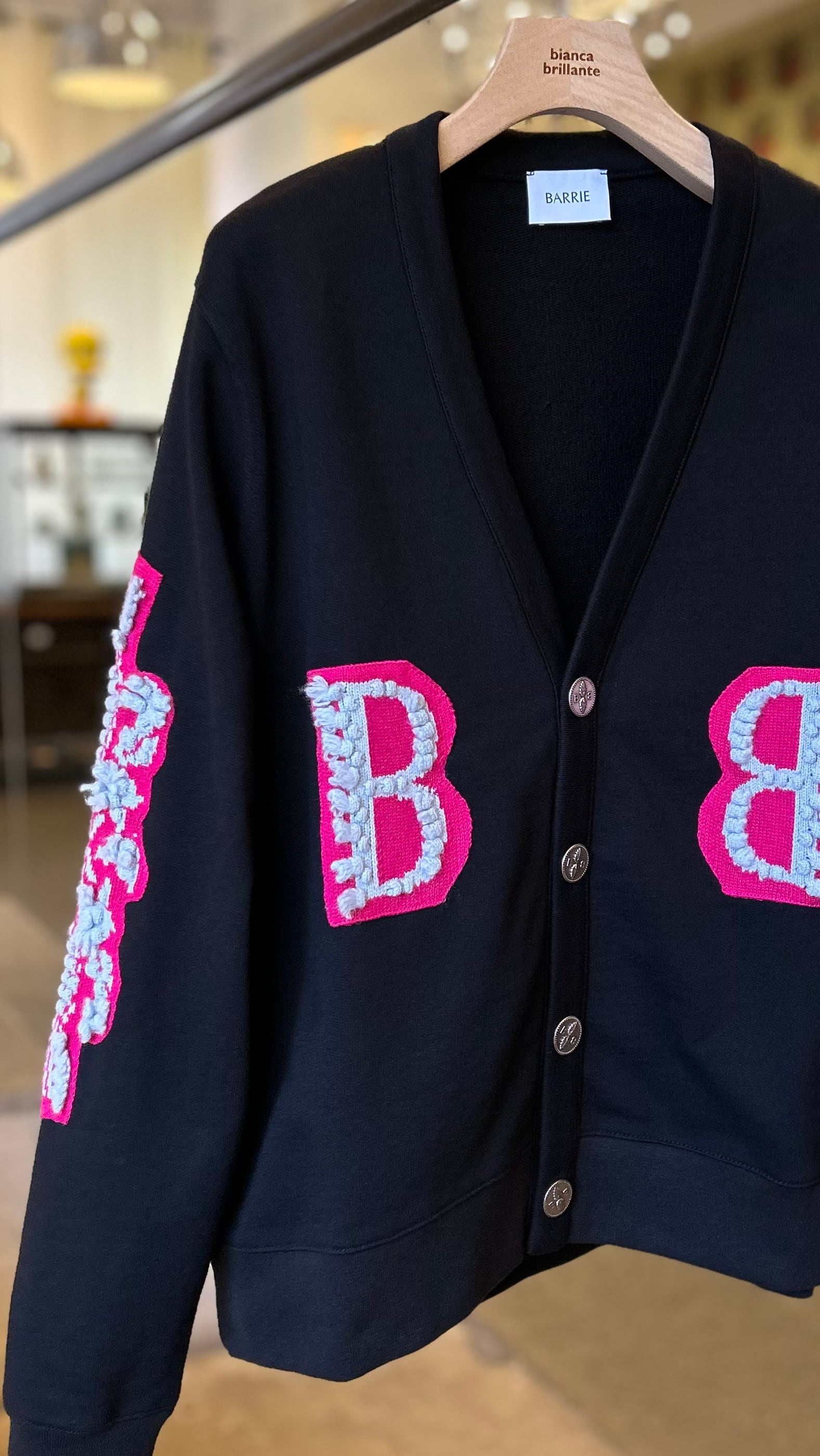 BARRIE -Cardigan in cotton with a cashmere B logo-:718(FUCHSIA PINK/BLUE GREY)