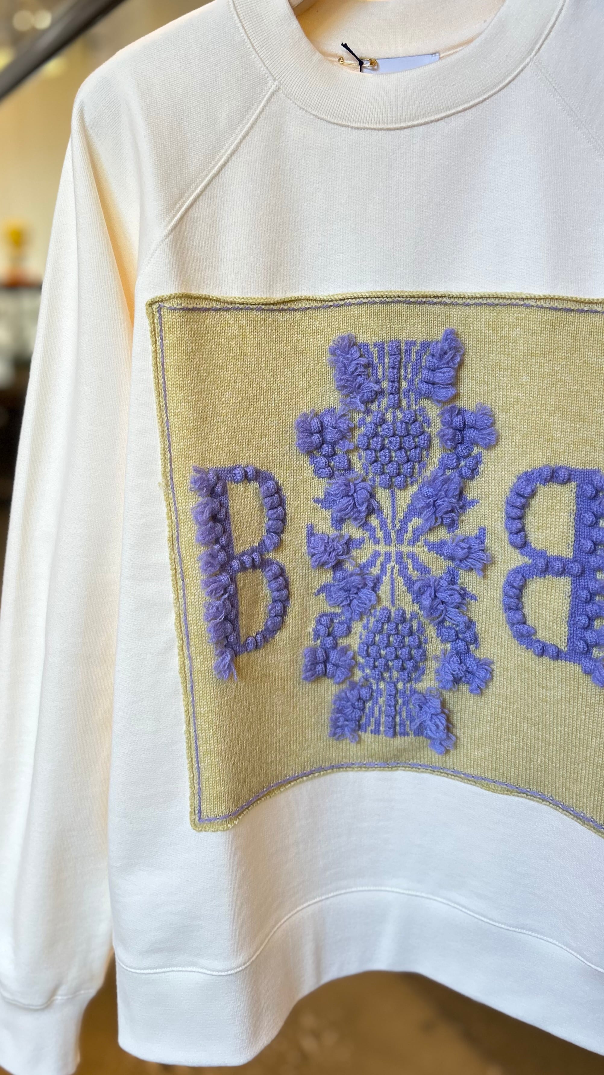BARRIE -Sweatshirt with Barrie logo cashmere patch- :545(LAVENDER/MIMOSA)