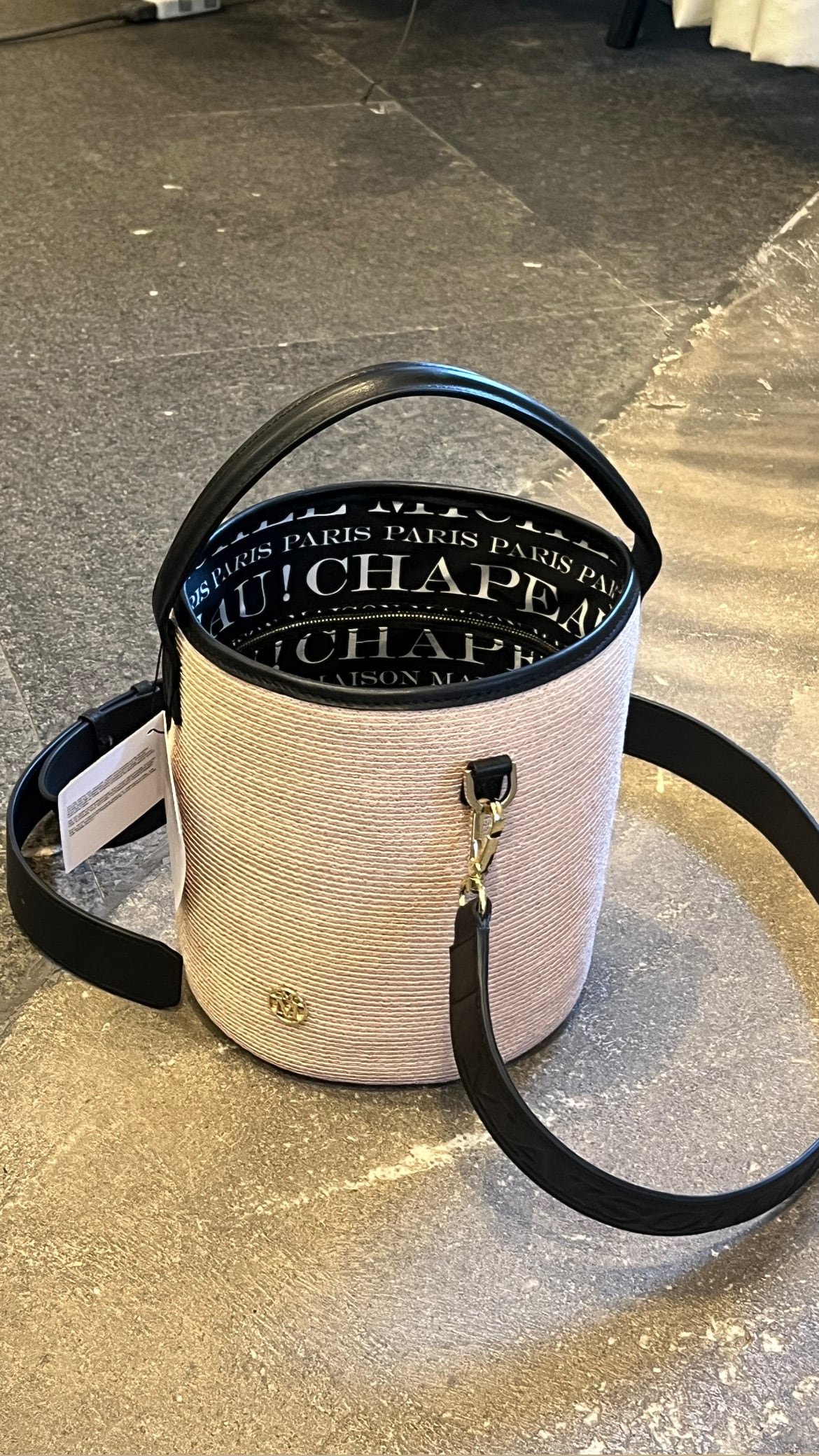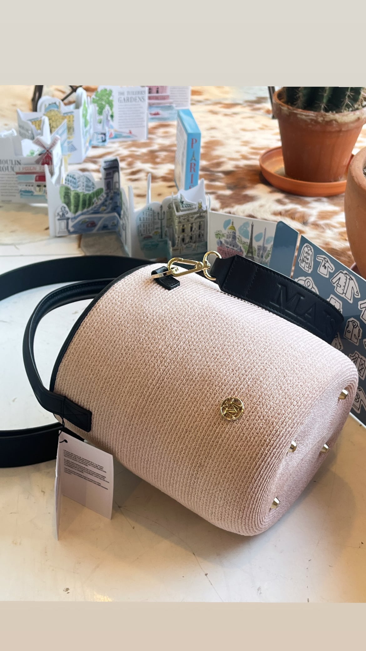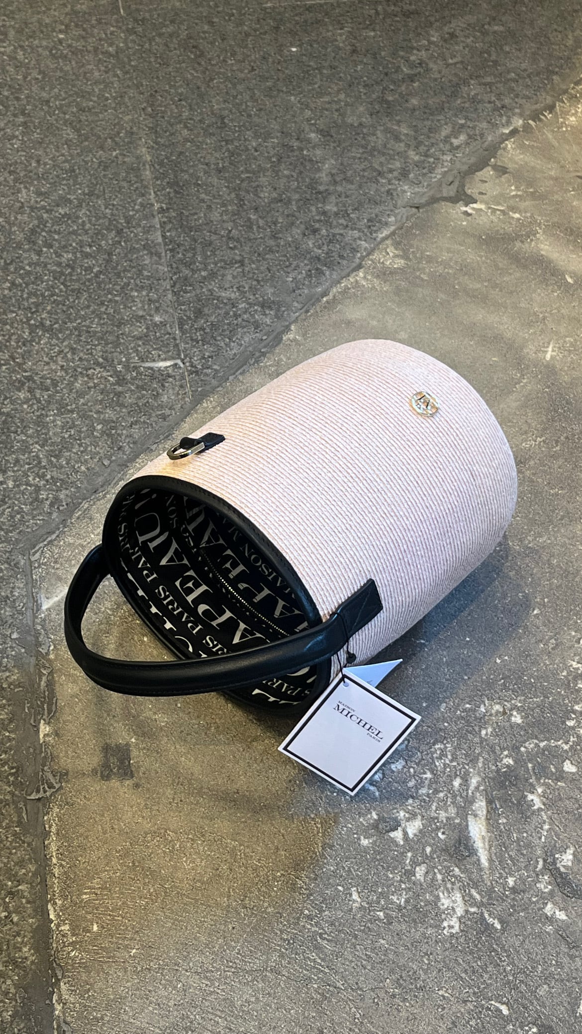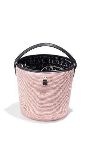 MAISON MICHEL -Sharon- Bag HEMP in pink straw.: PINK/BLACK,*Special Price