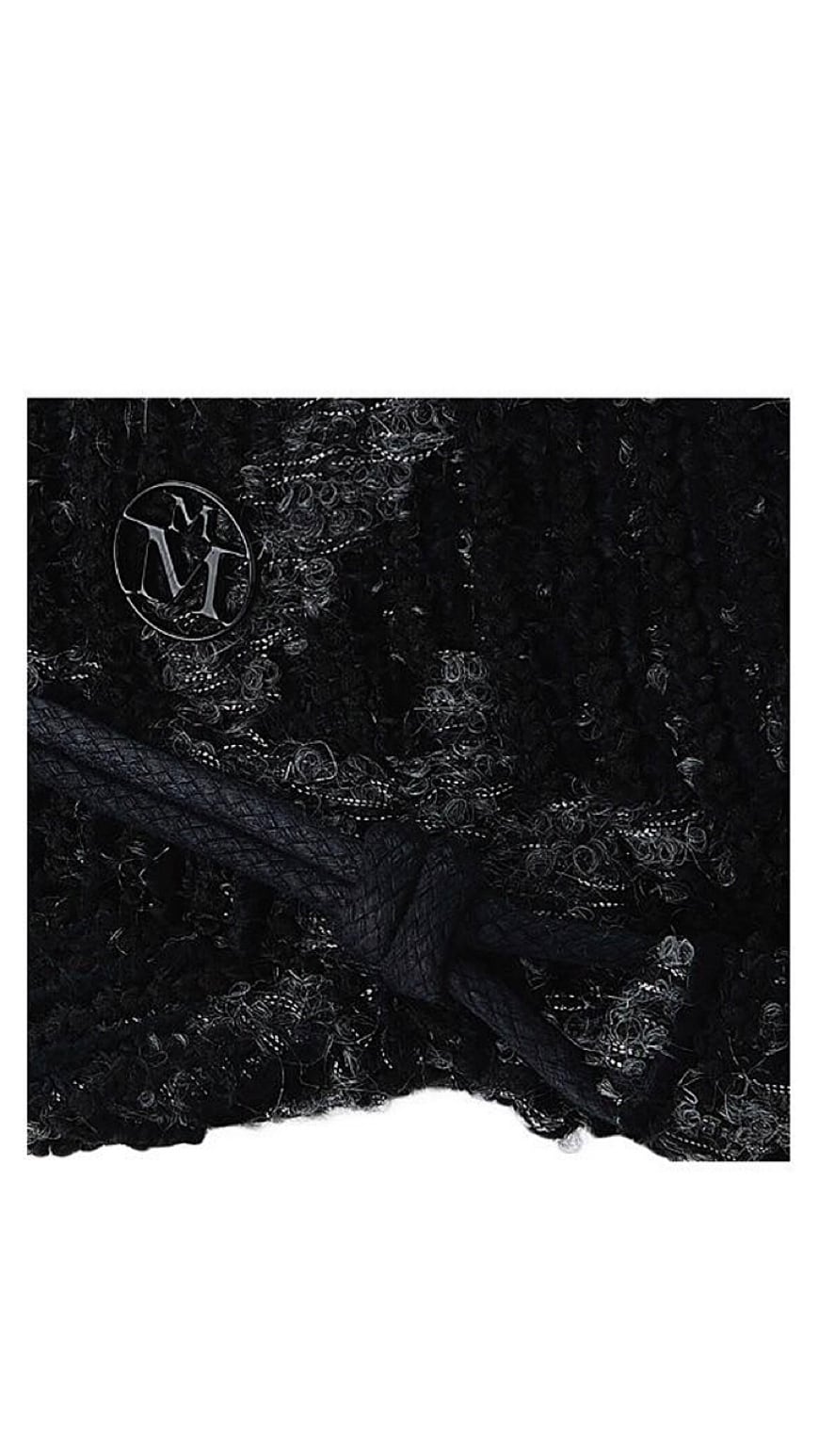 メゾン ミッシェルのために特別にデザインされた、ベルベット効果とメタリックな糸を使用したツイードで装飾されています。 ブラックラッカーでMaison Michelのロゴが装飾されています。