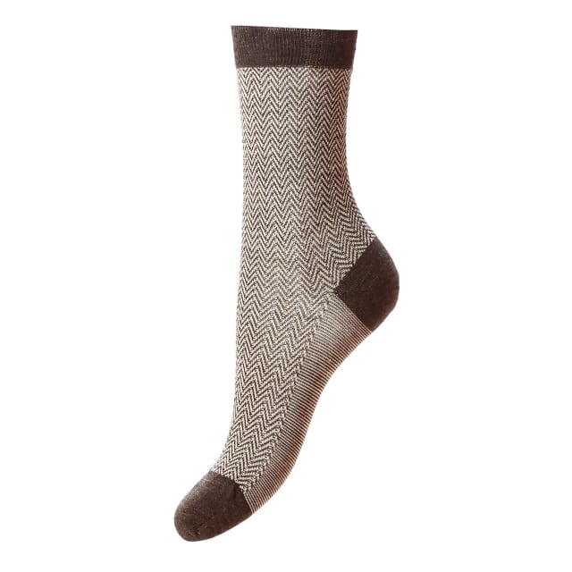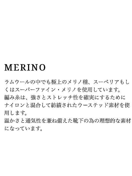 トラディショナルなヘリンボーン柄のソックス。定番の柄は革靴との相性が良く、薄手なので上品にコーディネートが出来ます。ウール素材は高い保温性と吸湿・放湿性にも優れ、ムレ感が少ないので革靴と合わせても快適な履き心地です。