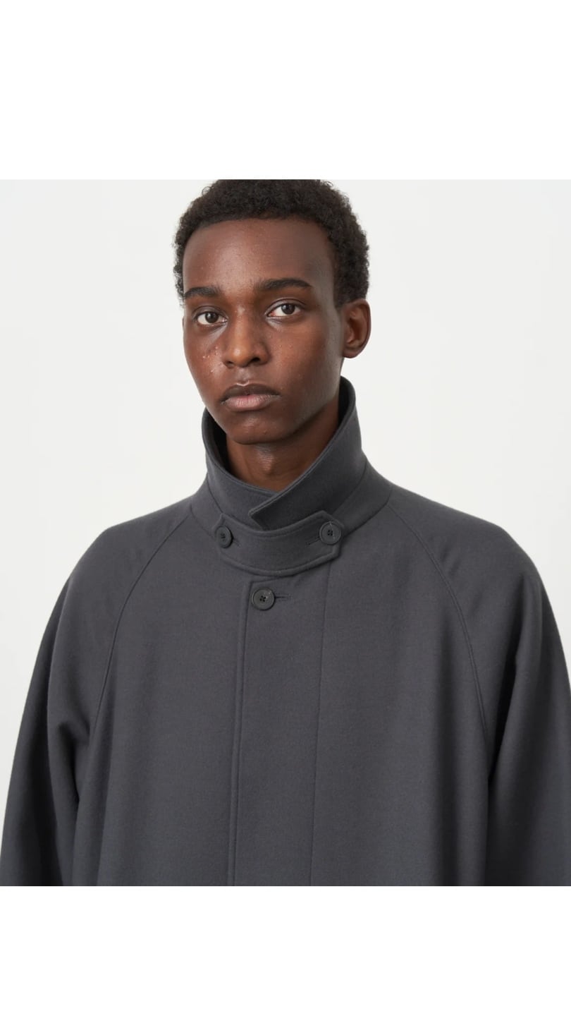 ベーシックなストレートシルエットのバルマカーンコート。90年代のフランス軍のコートをベースに、大胆に広くとった身幅と、裾に向かって広がる迫力あるAラインシルエットが特徴です。裏地に使用している特殊な洗いのかかった柔らかいコットン素材が、立体的なシルエットを作り出します。
