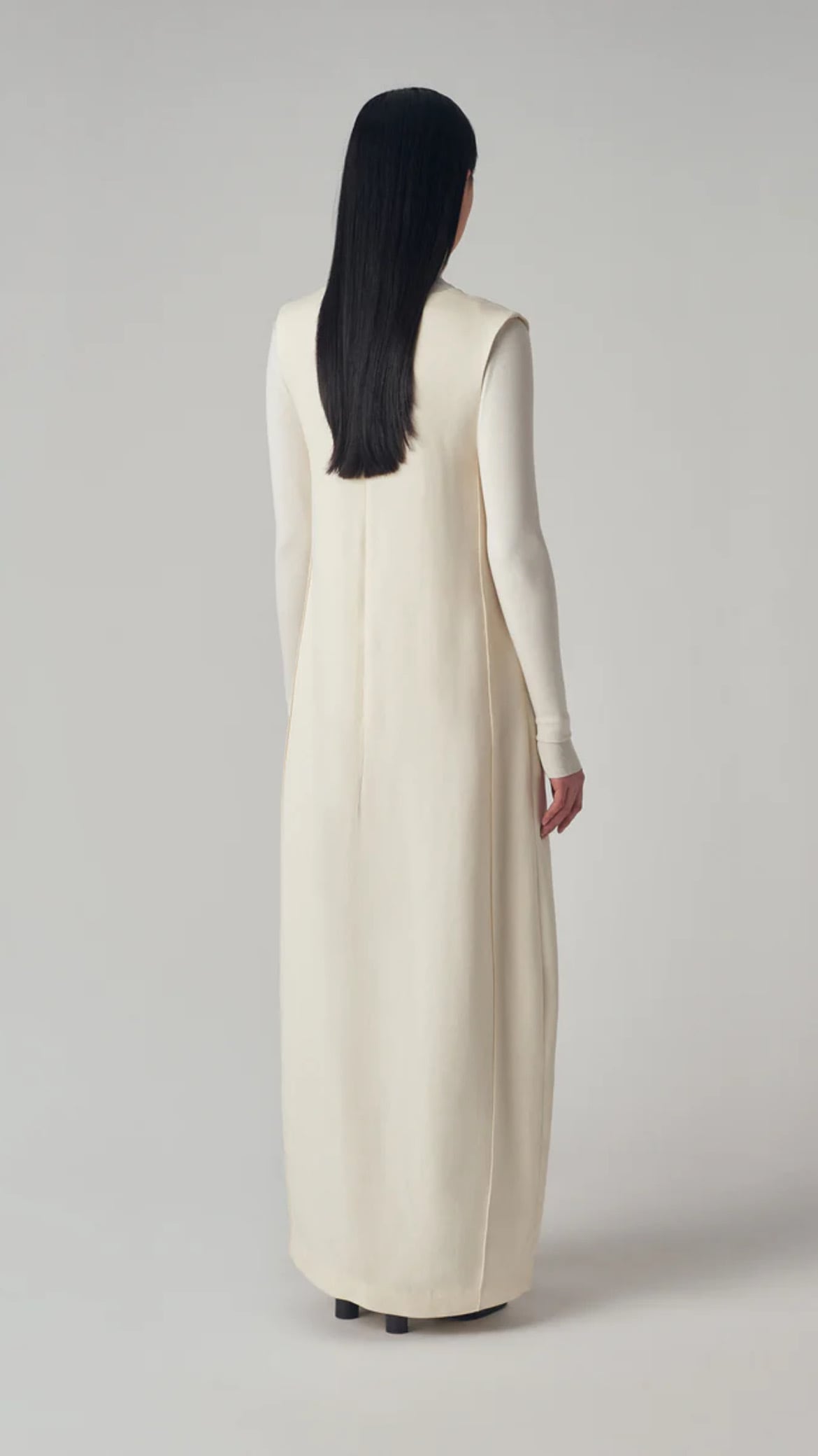 CO -Sleeveless Shift Dress in Textured Crepe- : IVORY,