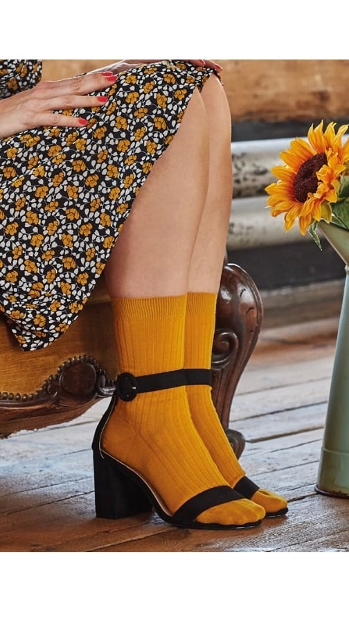 無地のリブソックスはシンプルで合わせやすく、程よい長さと薄手に仕上げているので革靴やパンプス、スニーカーと様々なスタイルに合わせやすく上品な印象に仕上げてくれます。薄手でもウール素材は高い保温性と吸湿・放湿性にも優れムレ感が少なく快適な履き心地です。