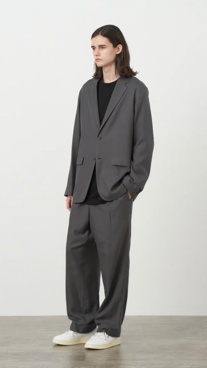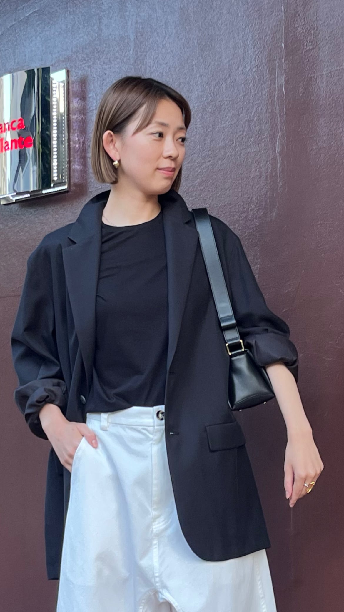 ややゆったりしたボックスシルエットで、リラックスした雰囲気で着ていただけるジャケットです。