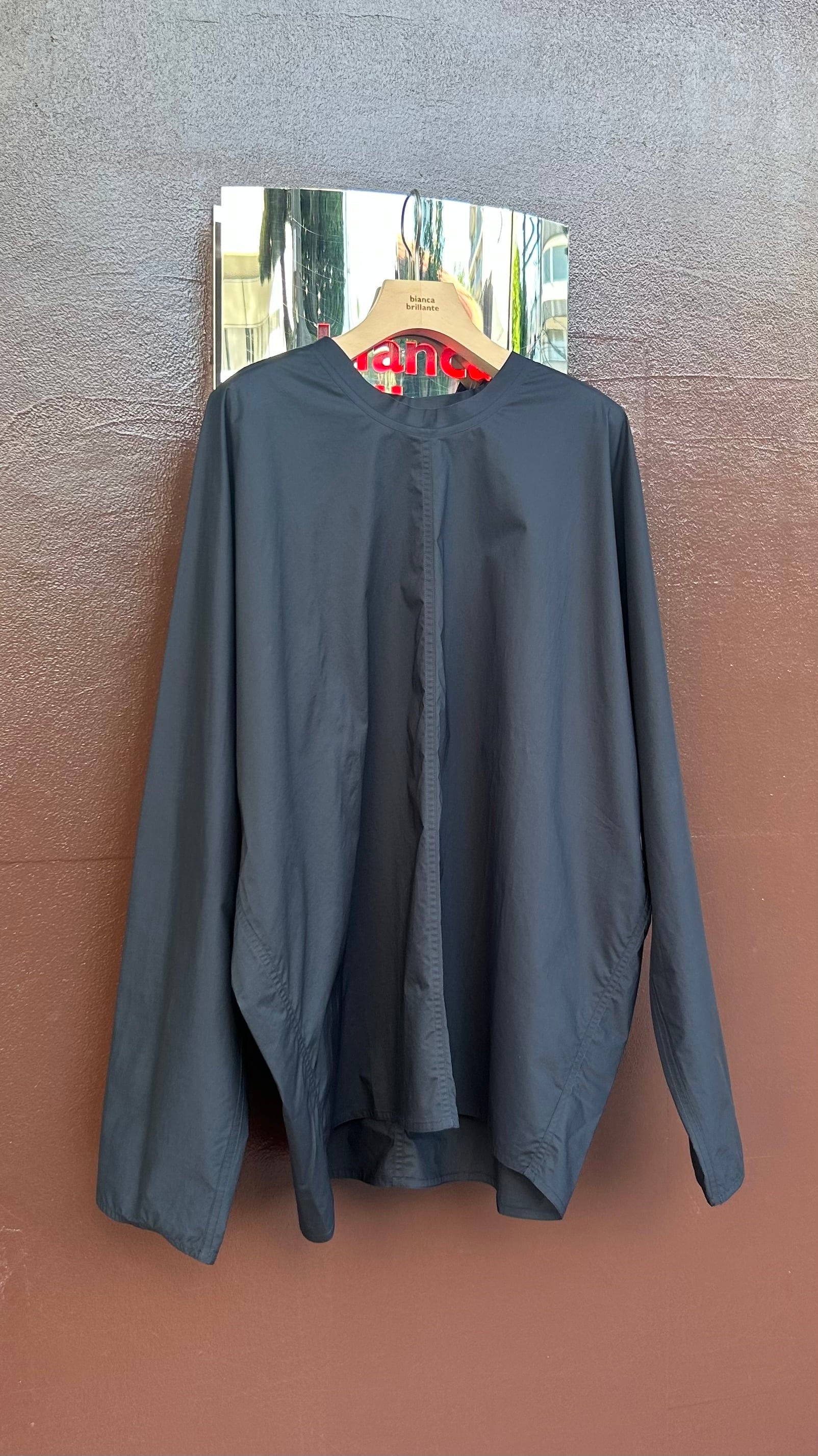 : ロングシヴカラーとフロントステッチ付きトップ