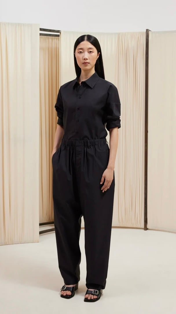 LEMAIRE -Relaxed Pants(WASHED COTTON SILK)- :BLACK