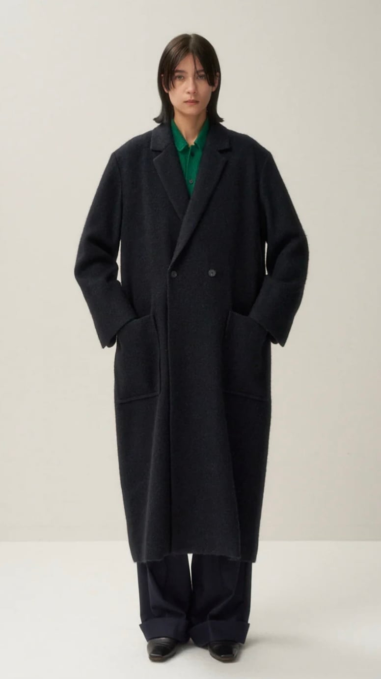 ATON -BABY ALPACA | LONG TAILORED COAT-:NAVY,