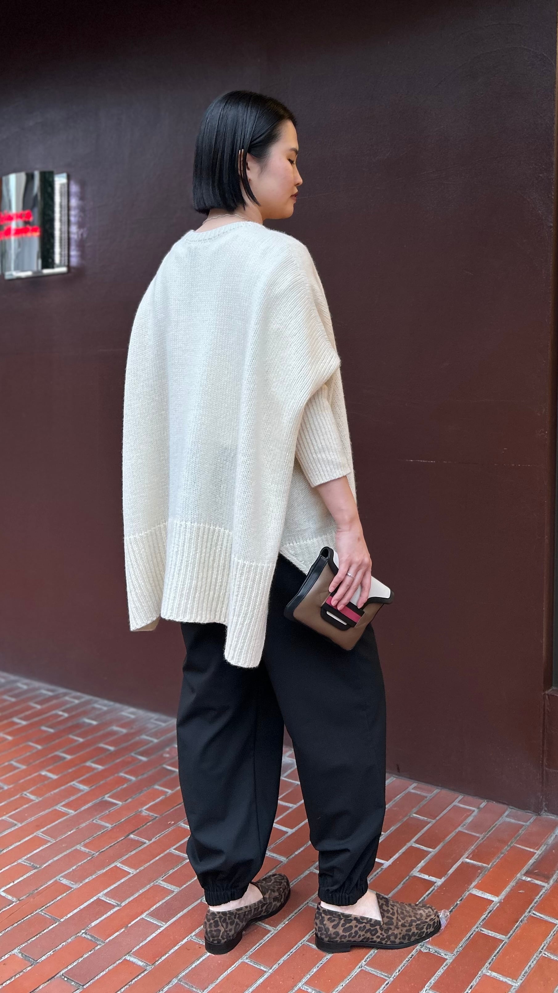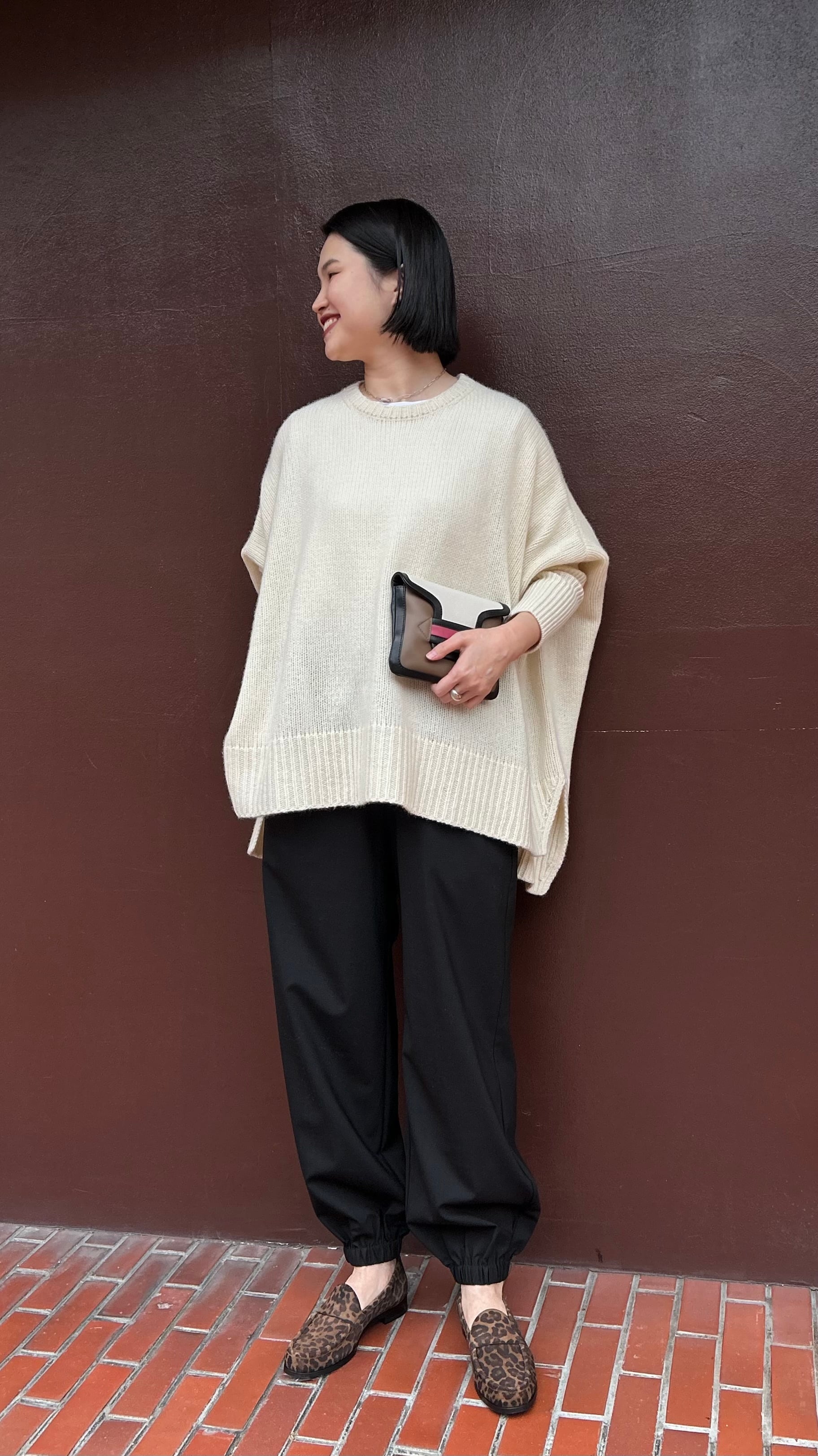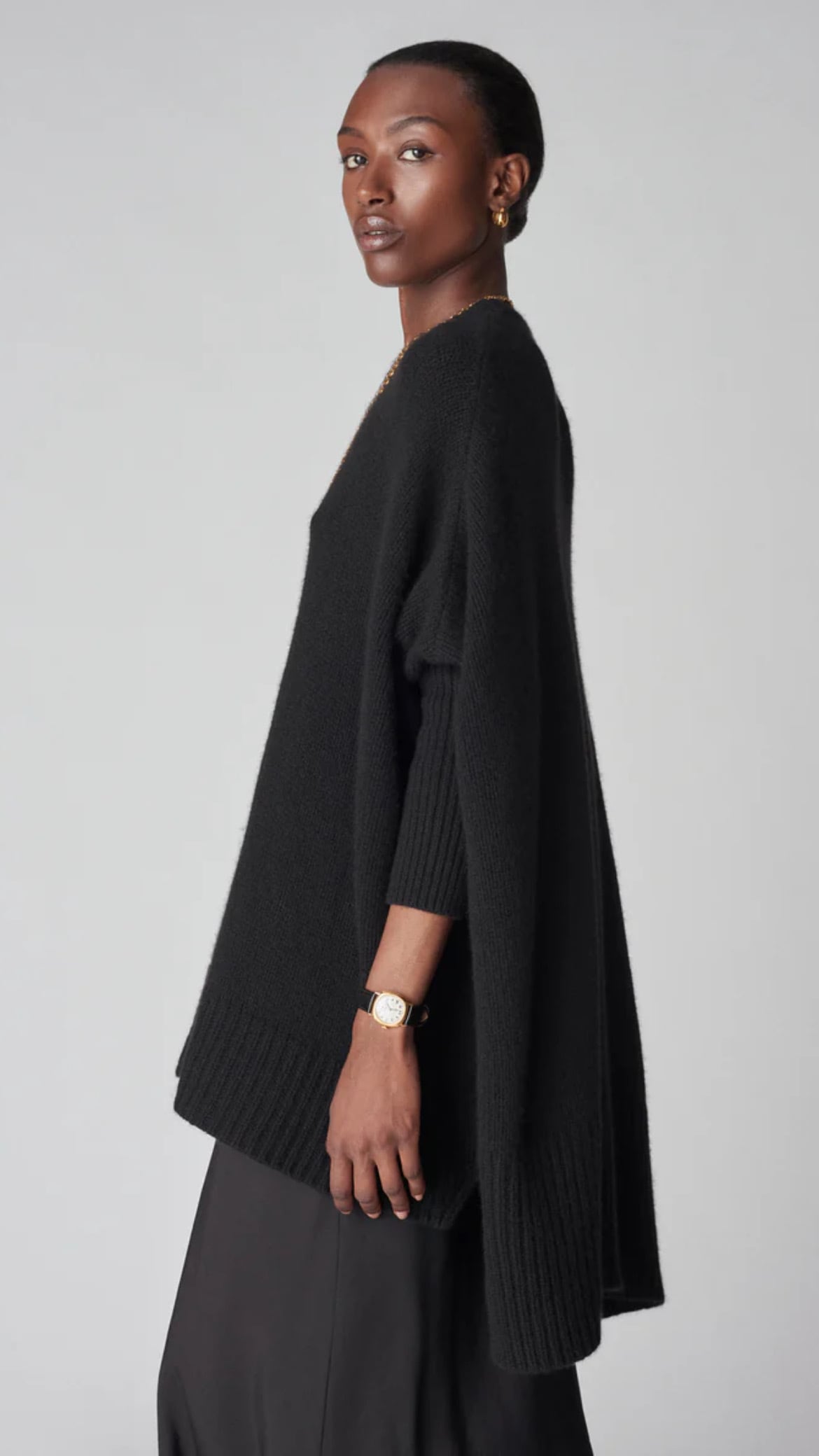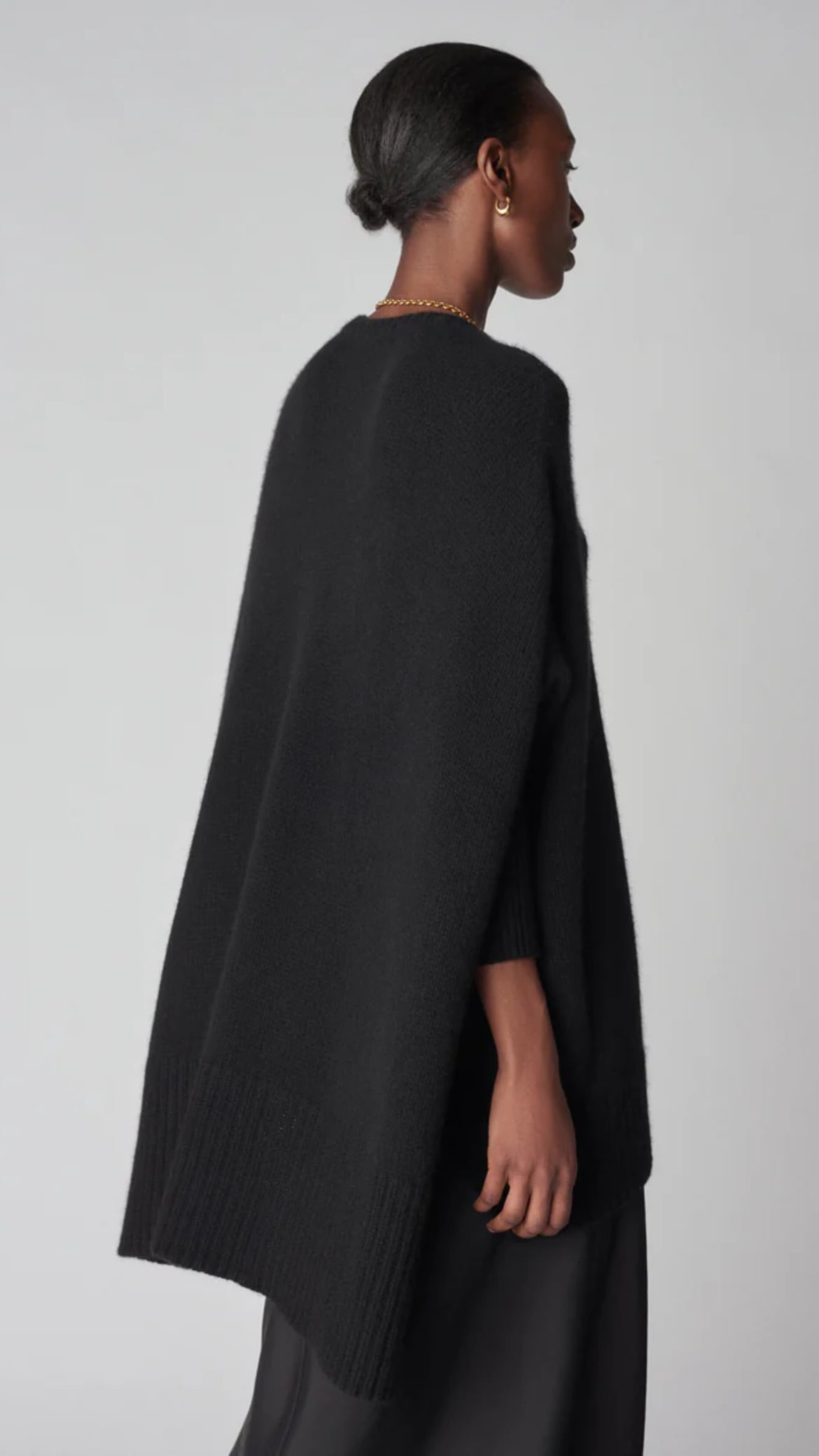 ポンチョスタイルのセーターで贅沢な柔らかさに身を包みましょう。カシミヤの洗練さとモダンでリラックスしたシルエットを組み合わせました。フィットしたスリーブは、動きやすいようになっています。リブ編みのネック裾。