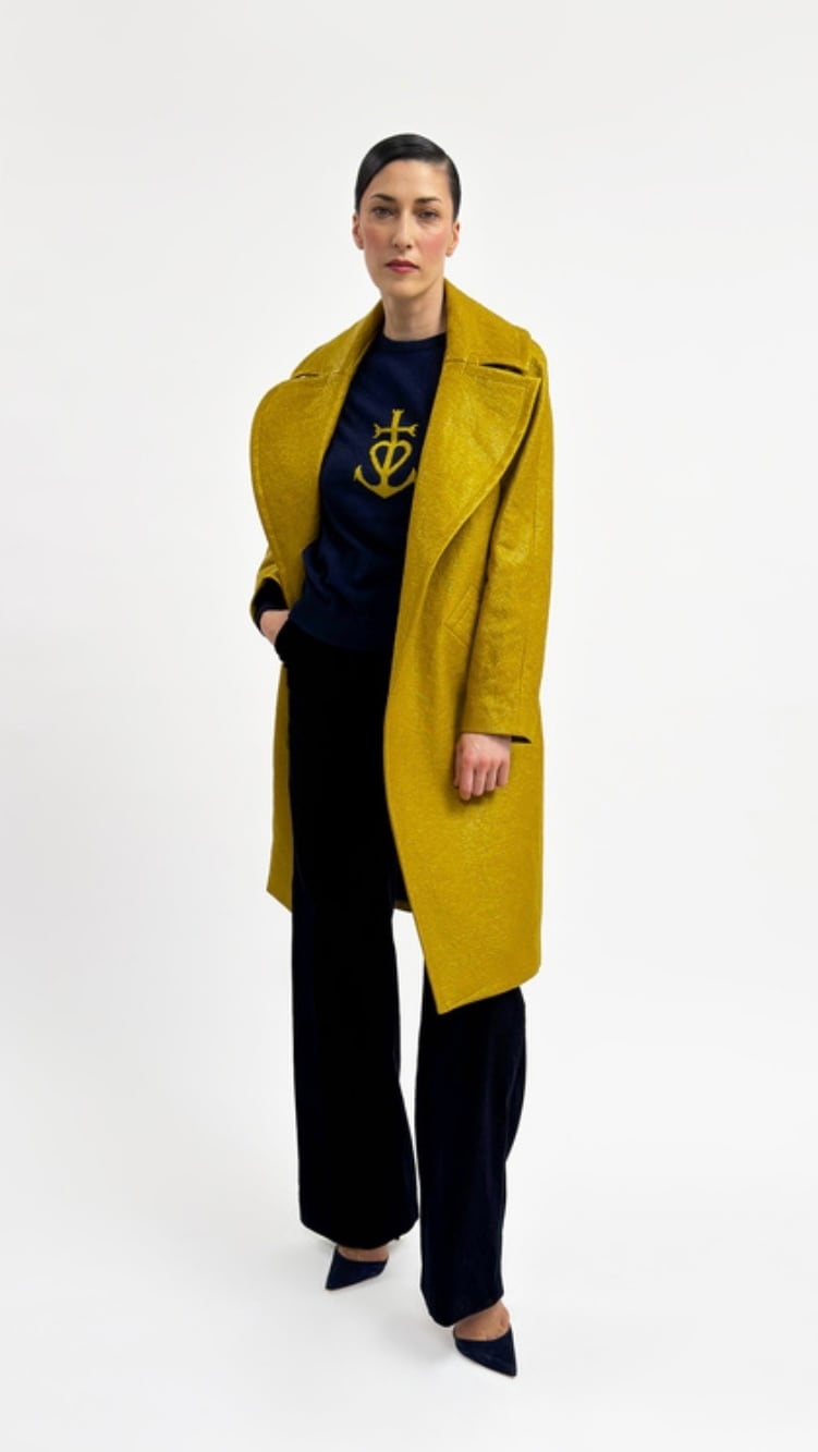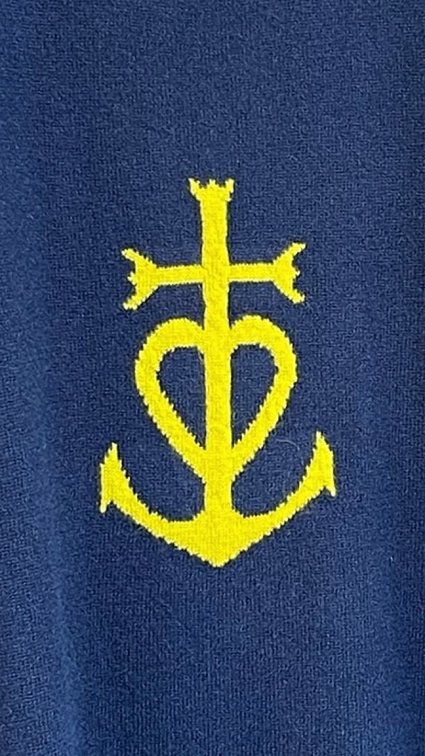MARTIN GRANT -Crew Neck Cashemere Sweater- : NAVY/YELLOW,